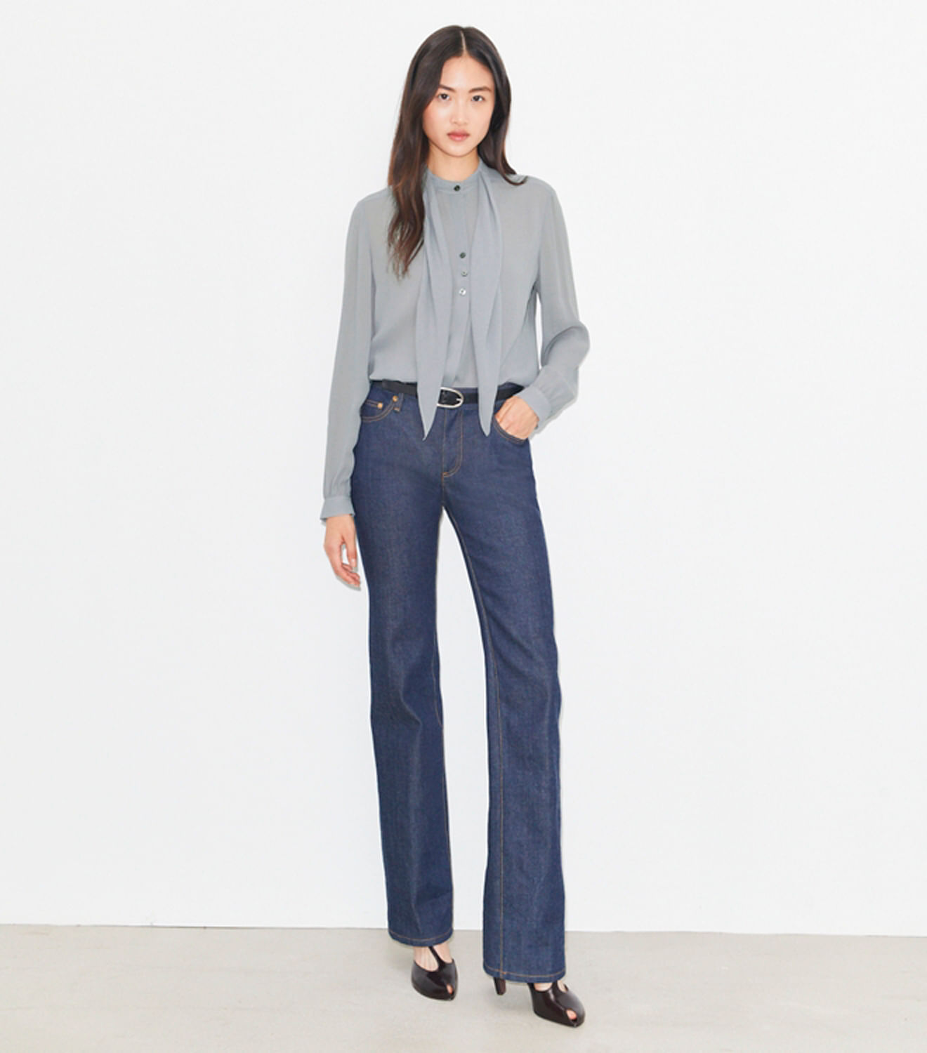 Um estilo que revisitamos a cada estação, a blusa com laço de georgette é um item essencial no guardaroupa. Usea sozinha ou por baixo dos suéteres e jaquetas da estação, amarrada com um laço elegante ou um nó desfiado.