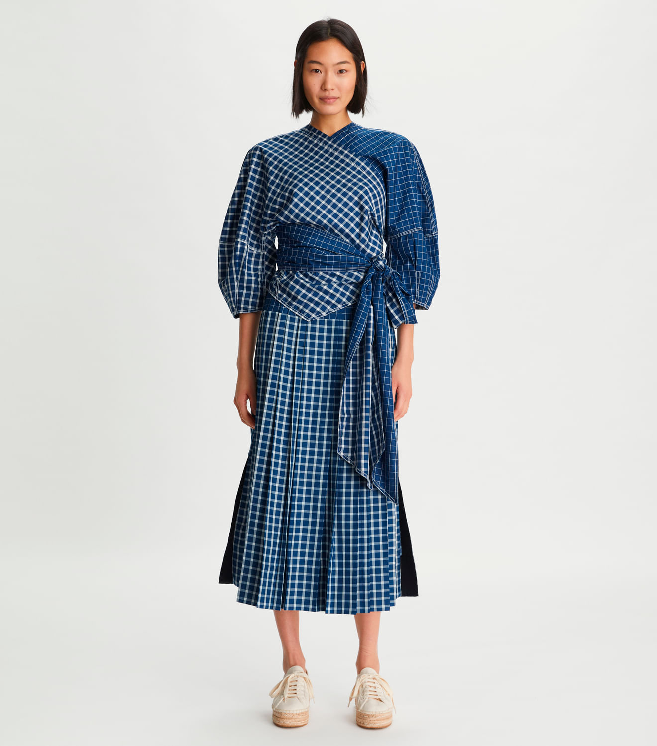 A coleção primavera/verão 2022 é inspirada na liberdade e versatilidade do clássico sportswear americano. Produtos atemporais são feitos de novas maneiras, com foco na elegância casual. Nossa Blusa Picnic Plaid Transpassada, em dupioni de seda detalhado com pespontos gráficos, é universalmente lisonjeiro, com mangas modernas e uma cintura que define a silhueta. Use-o com a calça ou saia combinando para um conjunto coordenado.