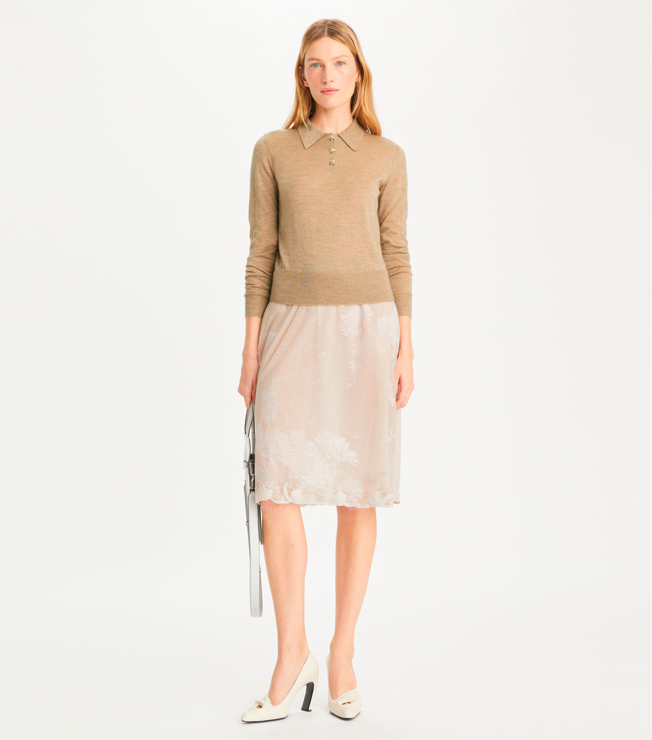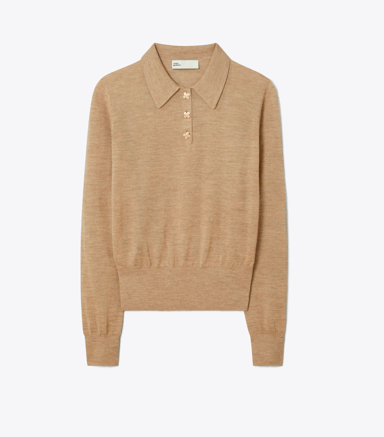 - Um clássico versátil, o nosso polo de cashmere de manga comprida é tricotado com nervuras na gola e na cintura. É um guarda-roupa elevado, essencial para usar sozinho ou em camadas.