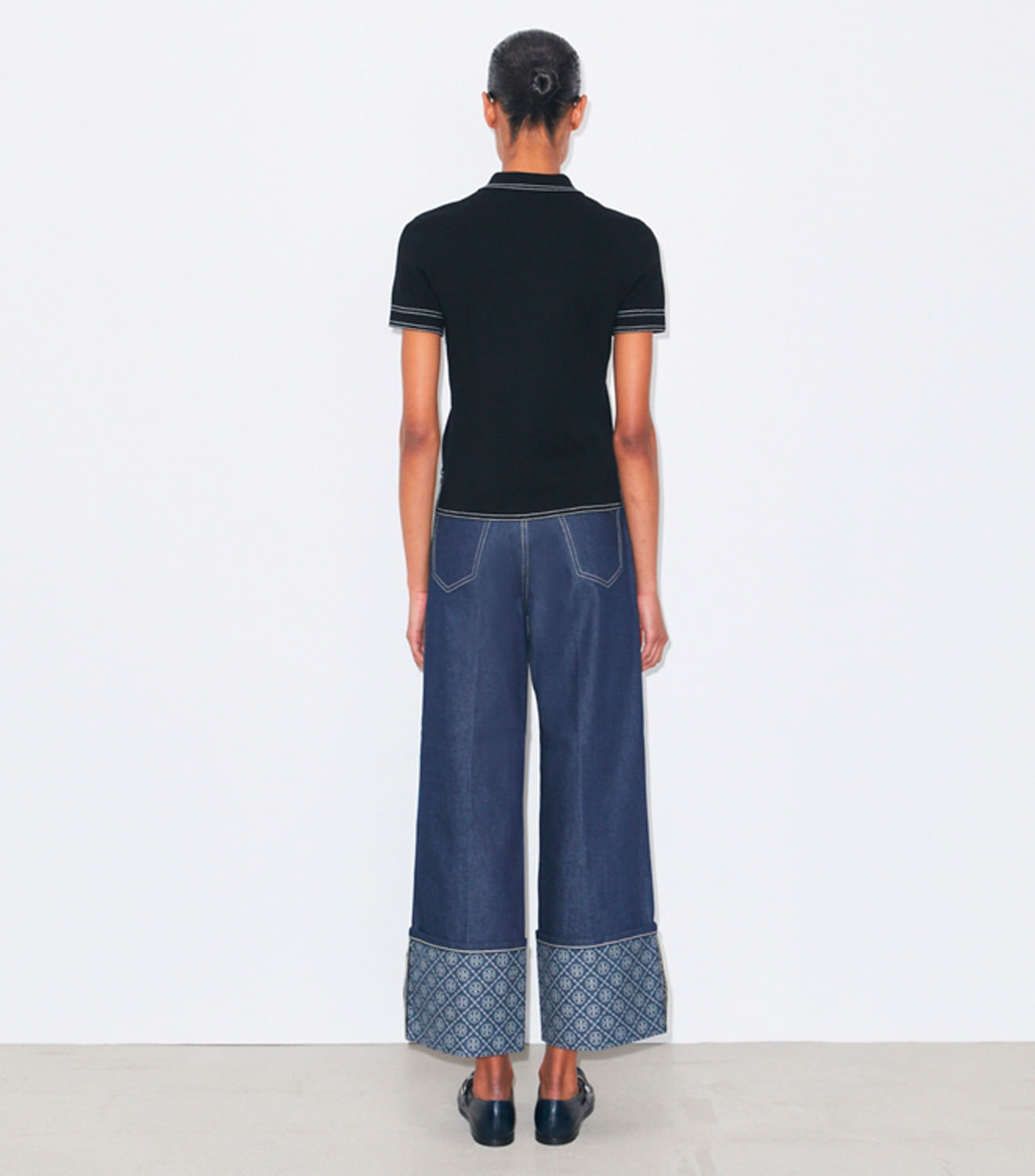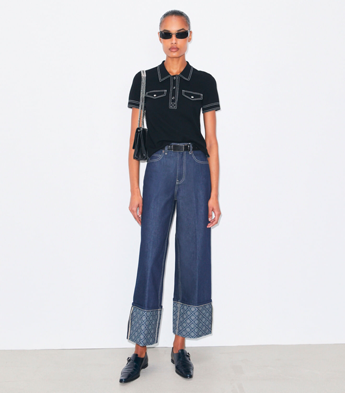 Detalhes utilitários, como costuras contrastantes e bolsos aplicados, adicionam um toque gráfico à camisa polo de lã. Combinea com a saia coordenada para um visual casual, porém elegante.