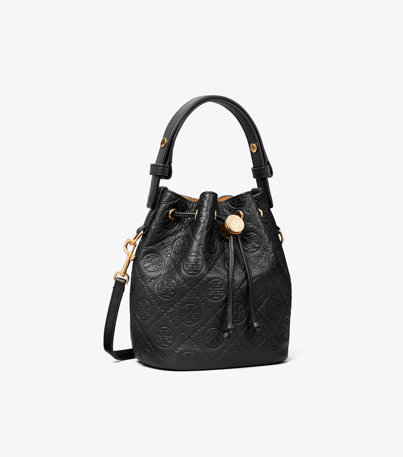 Nosso padrão exclusivo. A coleção expressa a atemporalidade de um estilo impecável. A Mini Bolsa Bucket com Monograma T é confeccionada em couro granulado macio com nosso padrão em baixorelevo. Com acabamento em couro fino, possui uma alça superior ajustável que pode ser usada no ombro e uma alça transversal removível. Os cordões são ajustados com um fecho metálico com o logotipo da marca. Pressione e segure para afrouxar os cordões e solte para travar. Cada detalhe foi pensado, com atenção especial à funcionalidade e versatilidade.Produzida em parceria com um curtume certificado pelo Leather Working Group, que preza pelos altos padrões de fabricação de couro e gestão de produtos químicos.