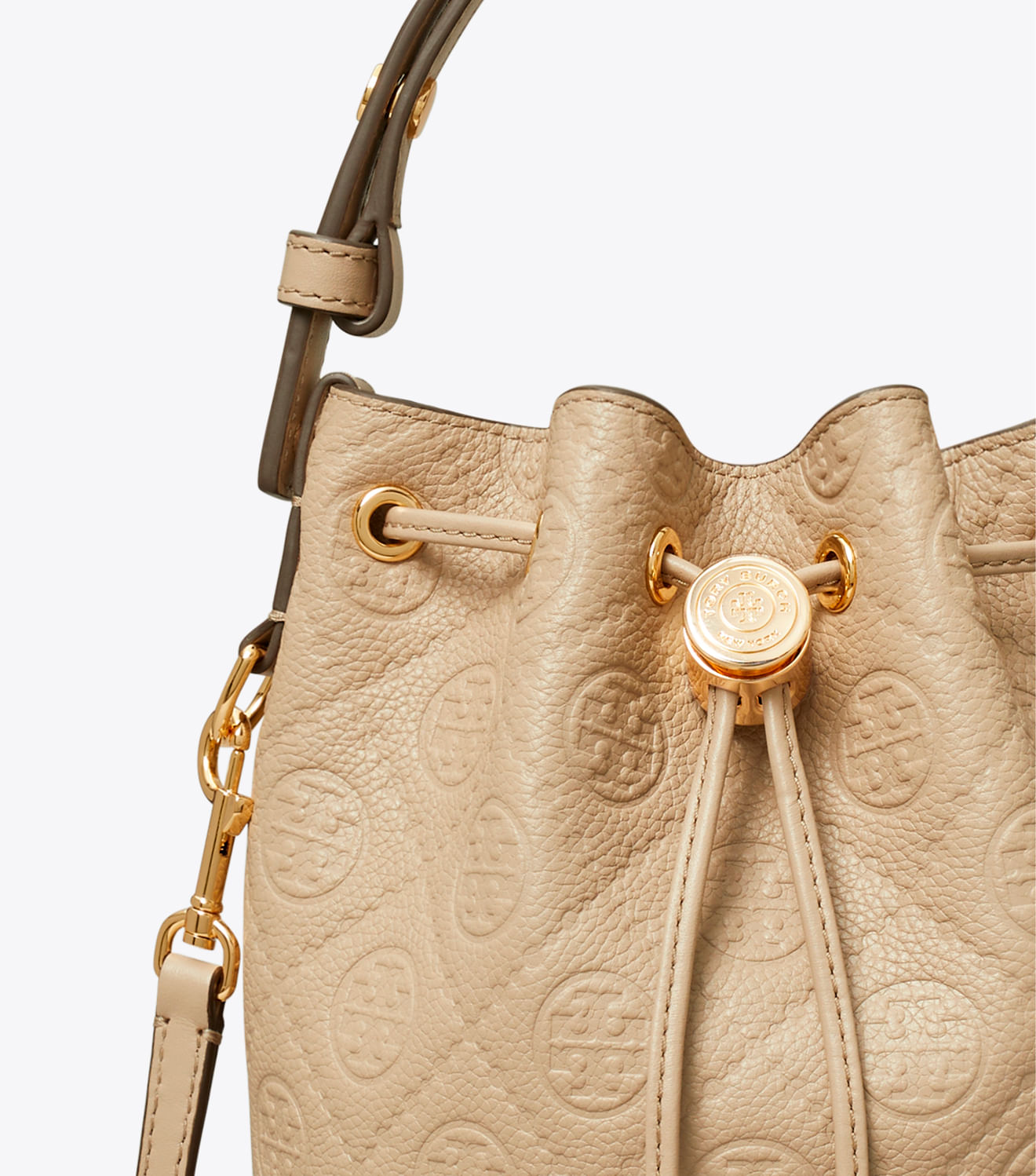 Nosso padrão exclusivo. A coleção expressa a atemporalidade de um estilo impecável. A Mini Bolsa Bucket com Monograma T é confeccionada em couro granulado macio com nosso padrão em baixorelevo. Com acabamento em couro fino, possui uma alça superior ajustável que pode ser usada no ombro e uma alça transversal removível. Os cordões são ajustados com um fecho metálico com o logotipo da marca. Pressione e segure para afrouxar os cordões e solte para travar. Cada detalhe foi pensado, com atenção especial à funcionalidade e versatilidade.Produzida em parceria com um curtume certificado pelo Leather Working Group, que preza pelos altos padrões de fabricação de couro e gestão de produtos químicos.