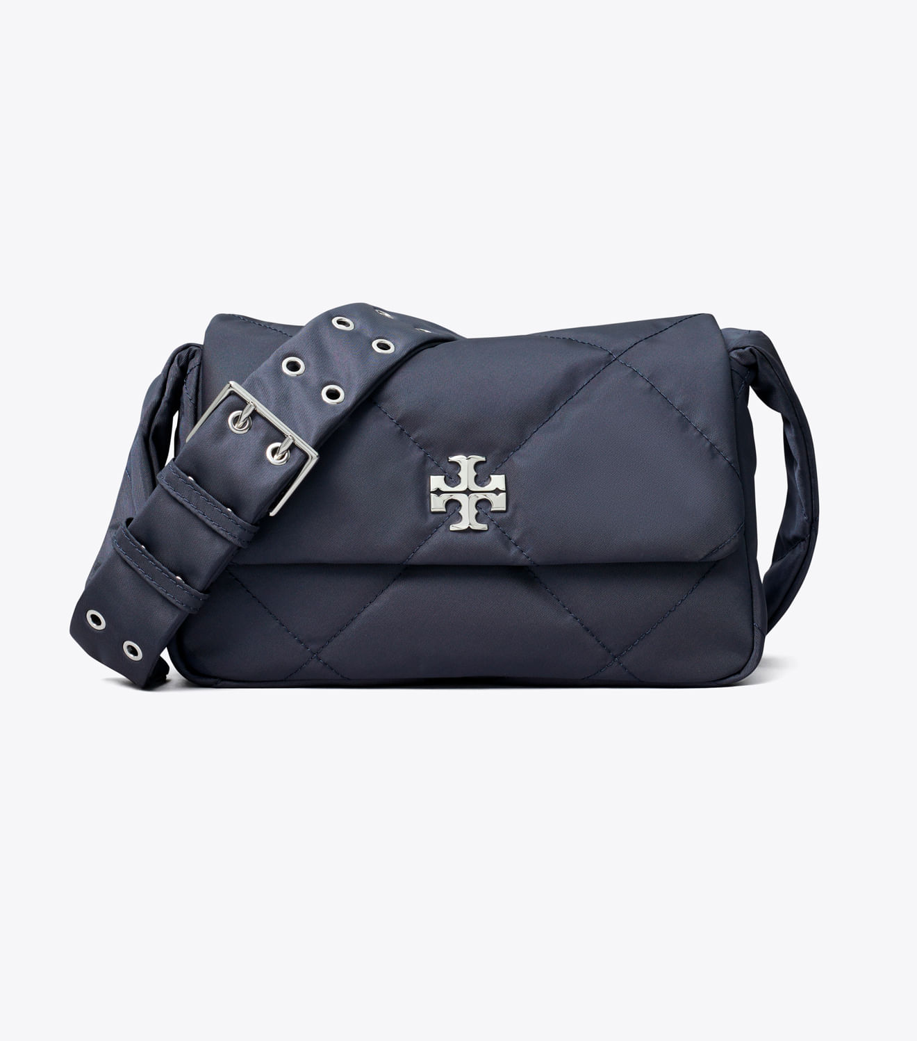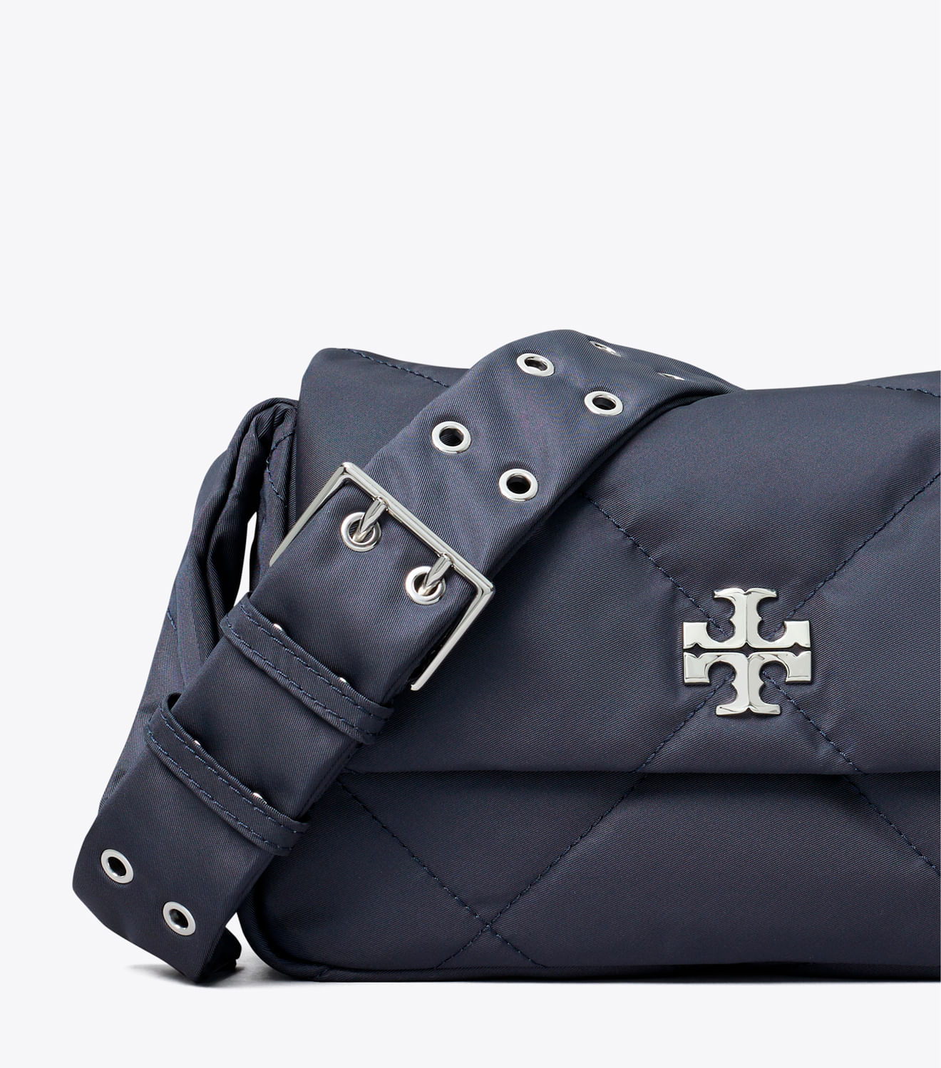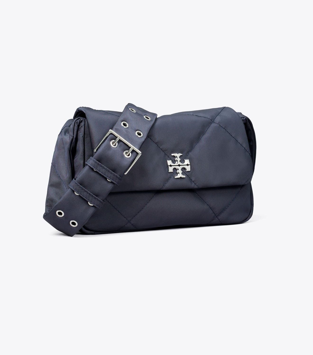 Confeccionada em nylon reciclado com um brilho sutil e detalhes em metal chanfrado com o logotipo duplo em T, a bolsa tiracolo acolchoada Kira Diamond apresenta um design prático com bolso interno e alça ajustável.