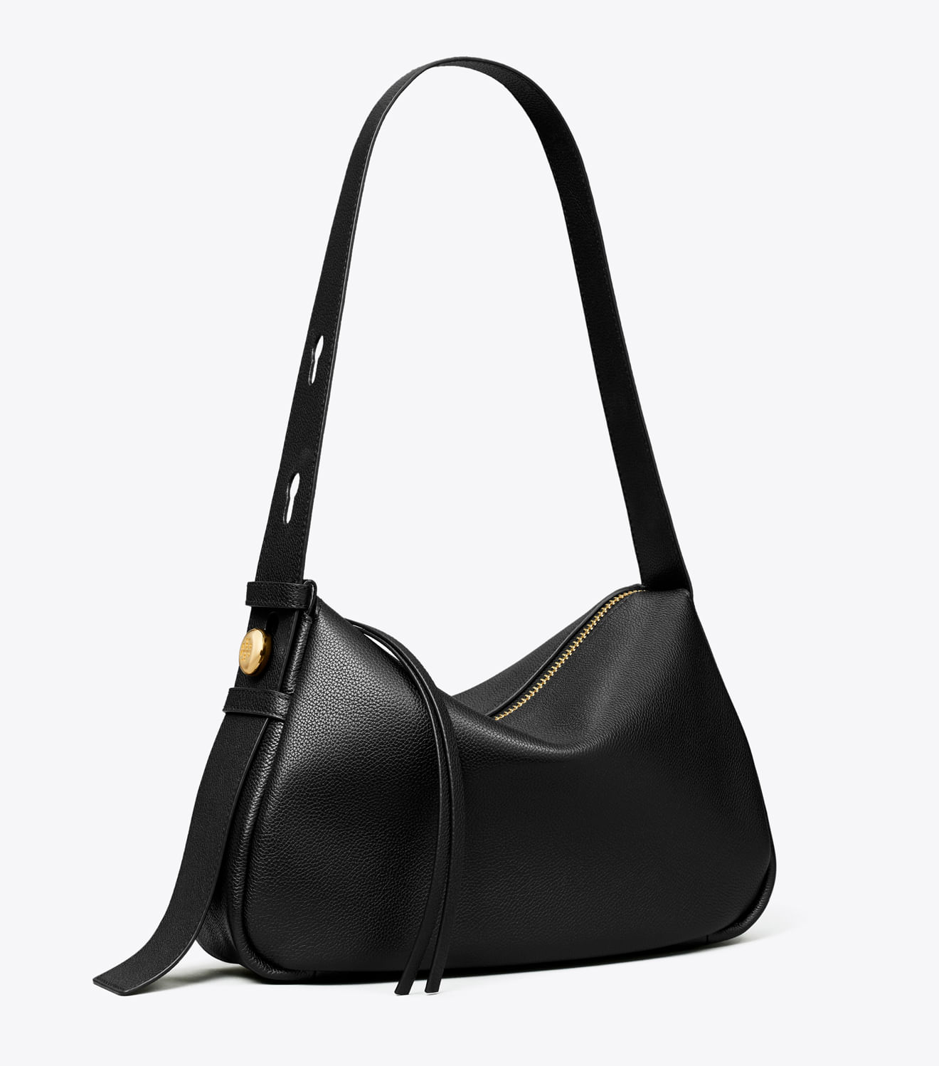A bolsa perfeita para o dia a dia. Escultural, porém macia e prática para usar em qualquer ocasião, a bolsa de ombro Romy é confeccionada em couro granulado de alta qualidade. Leve e com um interior espaçoso e organizado com um bolso interno com zíper, ela comporta celular, carteira, óculos de sol, tablet e chaves. A alça larga ajustável possui nosso novo logotipo em formato de botão. Criada em parceria com uma curtume certificada pelo Leather Working Group, que garante altos padrões na fabricação e no gerenciamento de produtos químicos utilizados no couro.