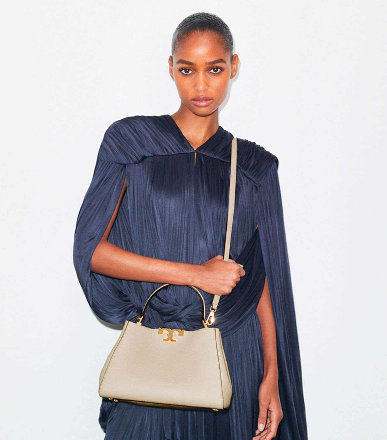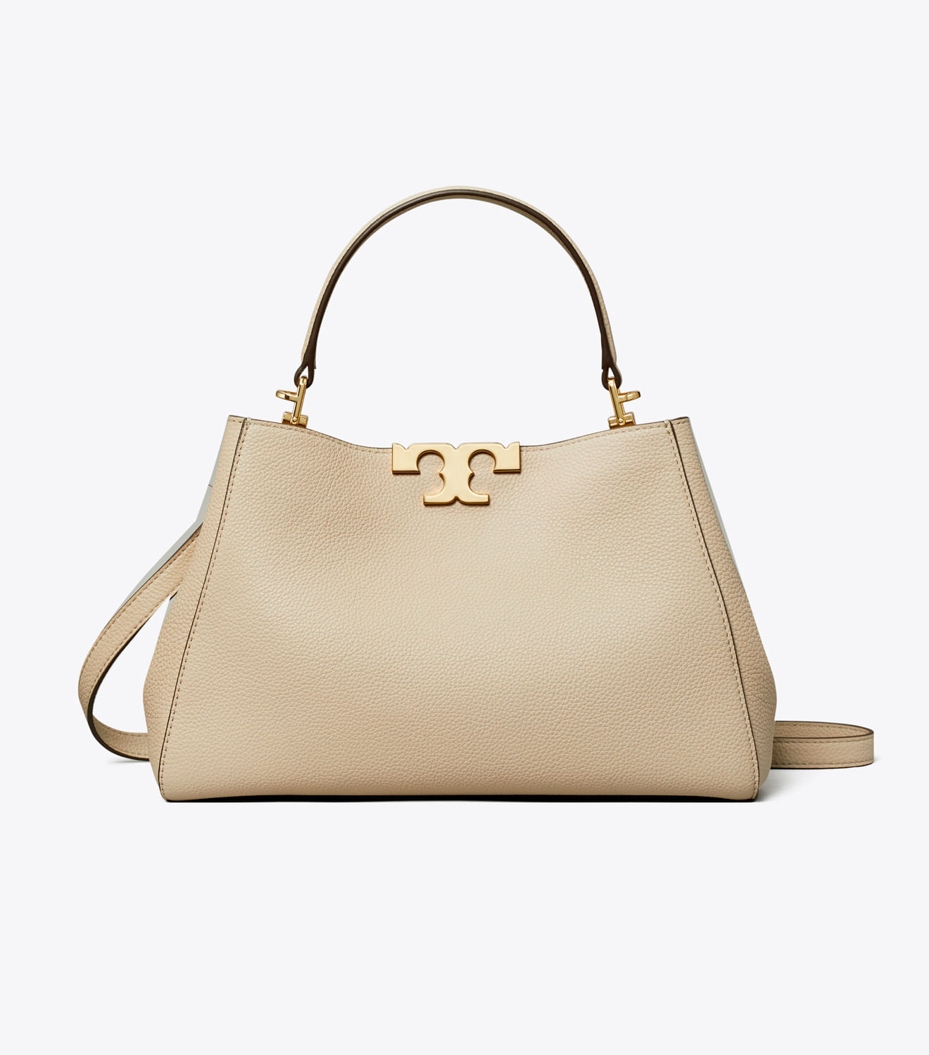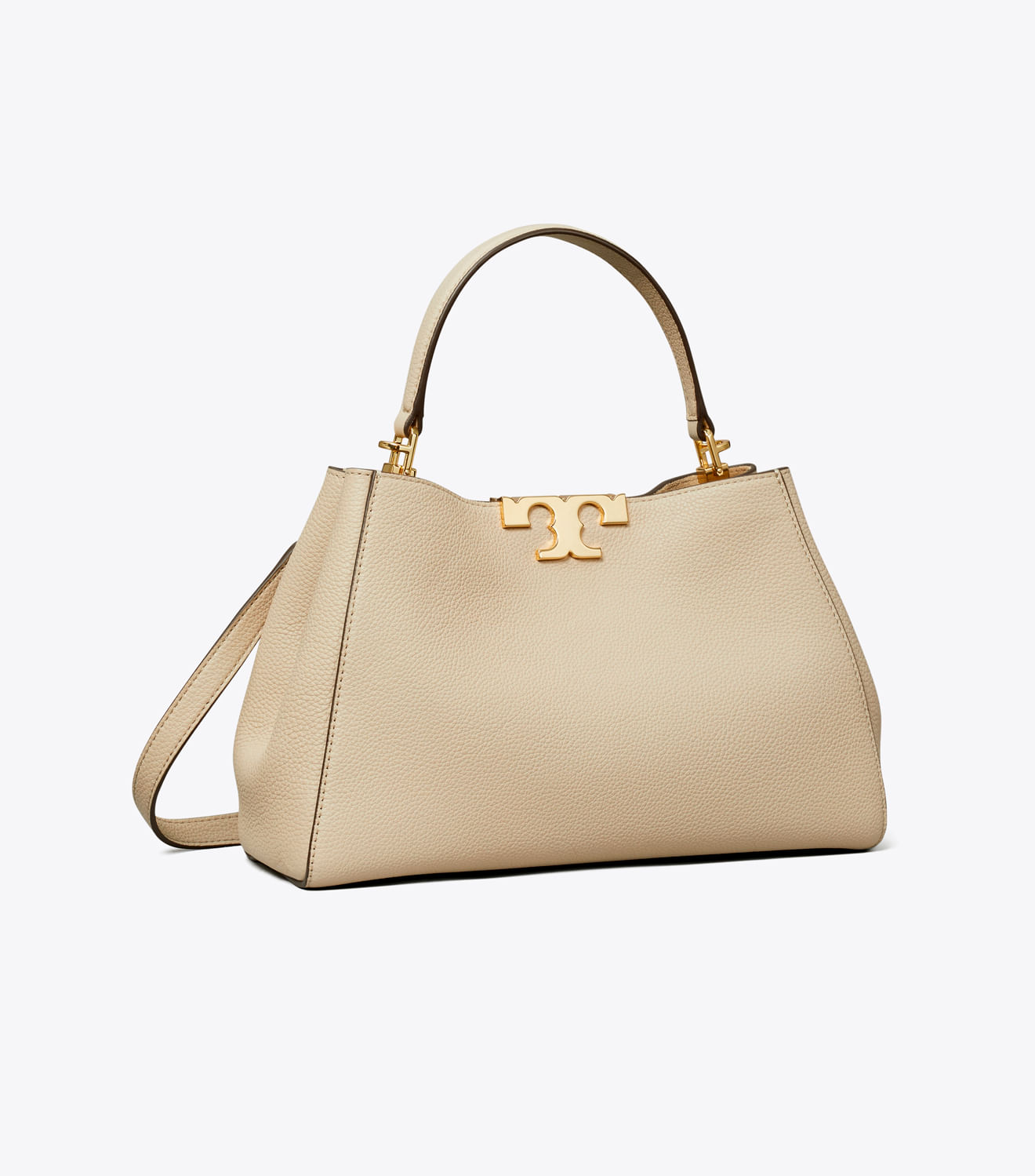 Uma joia feita à mão. A combinação perfeita entre sobriedade e opulência. Em contraste com linhas limpas e curvas arrojadas de detalhes esculturais, a bolsa Eleanor Satchel evolui com uma atitude mais descontraída. Confeccionada em couro granulado macio com textura refinada e acabamento semibrilhante, possui um caimento suave que cria uma sensação de volume sem esforço, tanto aberta quanto fechada. Totalmente forrada em camurça de alta qualidade, o interior conta com uma divisória central e um bolso com aba para melhor organização. Pode ser carregada pelas alças superiores ou pela alça de ombro removível.Produzida em parceria com um curtume certificado pelo Leather Working Group, que preza pelos altos padrões de fabricação de couro e gestão de produtos químicos.