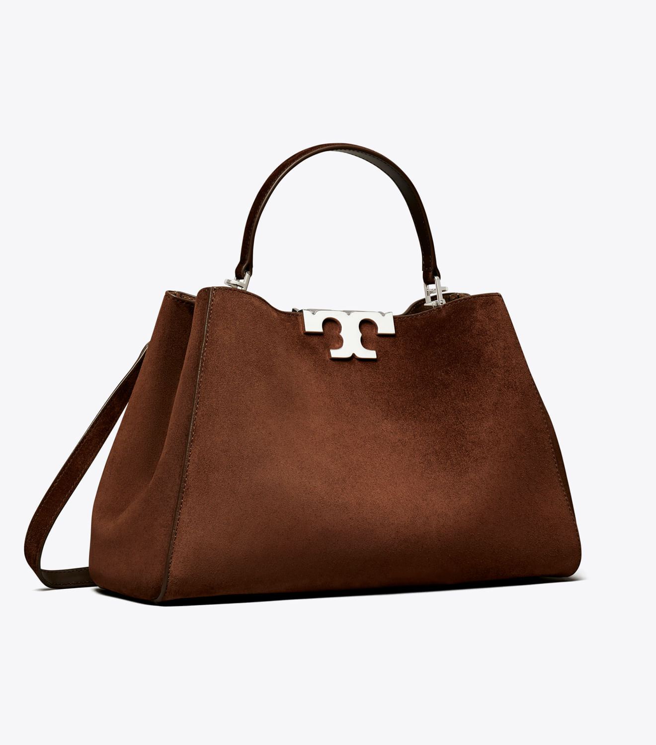 Uma joia feita à mão. A combinação perfeita entre sobriedade e opulência. Em contraste com linhas limpas e curvas arrojadas de detalhes esculturais, nossa bolsa Eleanor é confeccionada e forrada em camurça macia, com um bolso na divisória central para organização. Pode ser carregada pela alça superior ou pela alça de ombro removível.Produzida em parceria com um curtume certificado pelo Leather Working Group, que preza pelos altos padrões de fabricação de couro e gestão de produtos químicos.