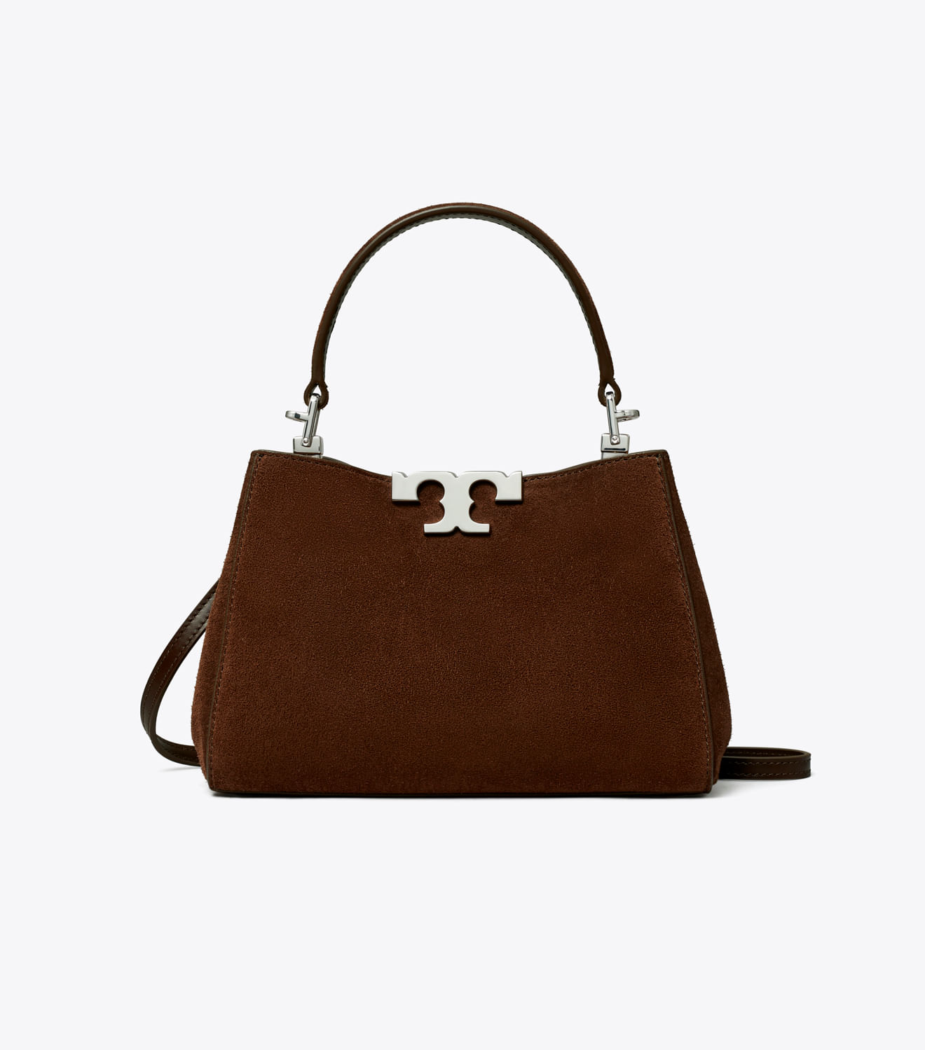 Uma joia de artesanato. A combinação elegante de sobriedade e opulência. Em contraste com linhas limpas, as curvas ousadas dos detalhes metálicos esculturais. A Mini Eleanor é confeccionada e forrada em camurça macia, com divisória central e bolsos para cartões para melhor organização. Pode ser carregada pela alça superior ou pela alça transversal removível. Fabricada em parceria com uma curtume certificada pelo Leather Working Group, que apoia altos padrões na fabricação de couro e no gerenciamento de produtos químicos.