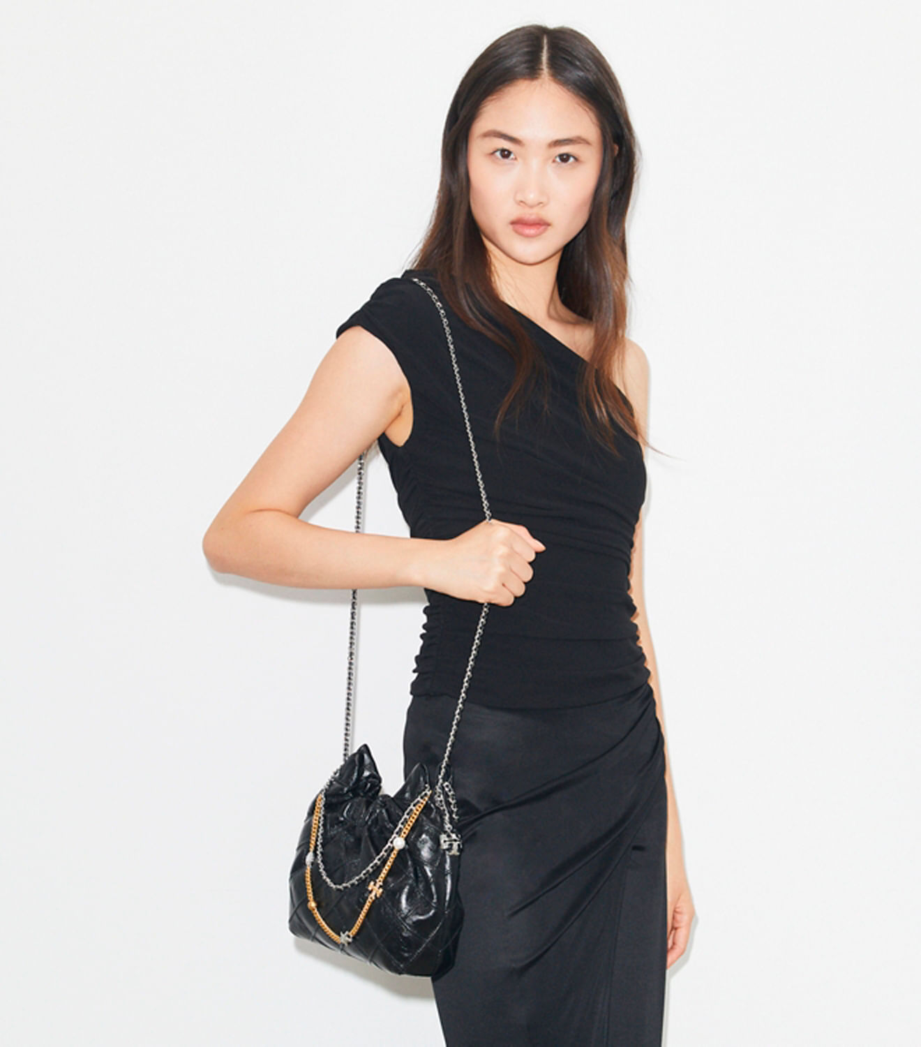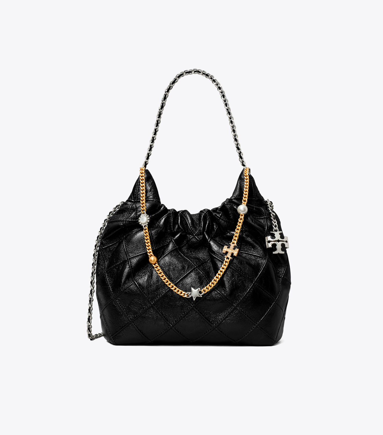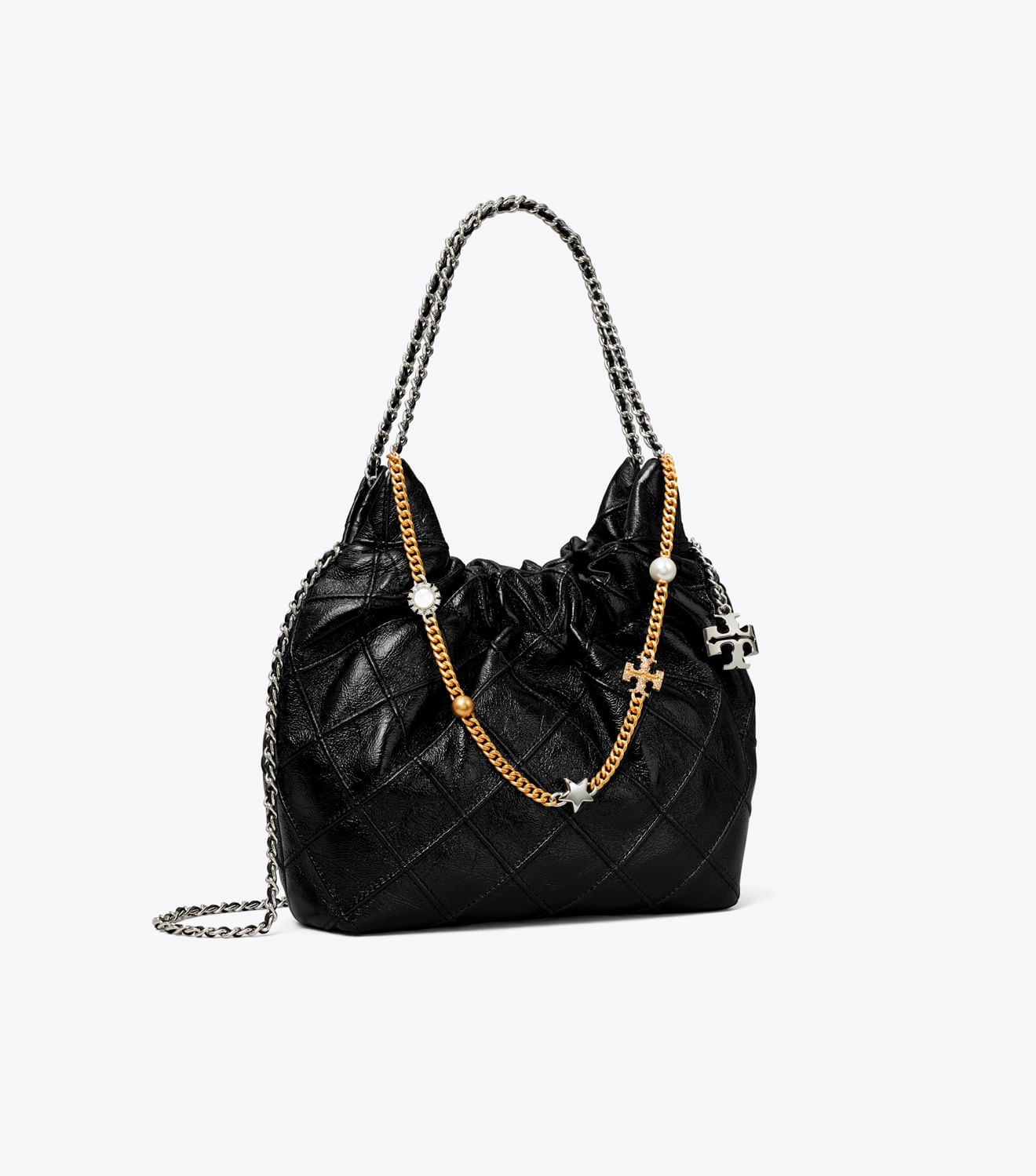Glamour duradouro. Feita de couro napa amassado para um efeito desgastado, a bolsa Mini Fleming Hobo é finalizada com pregas em formato de diamante e uma alça de corrente entrelaçada com couro.