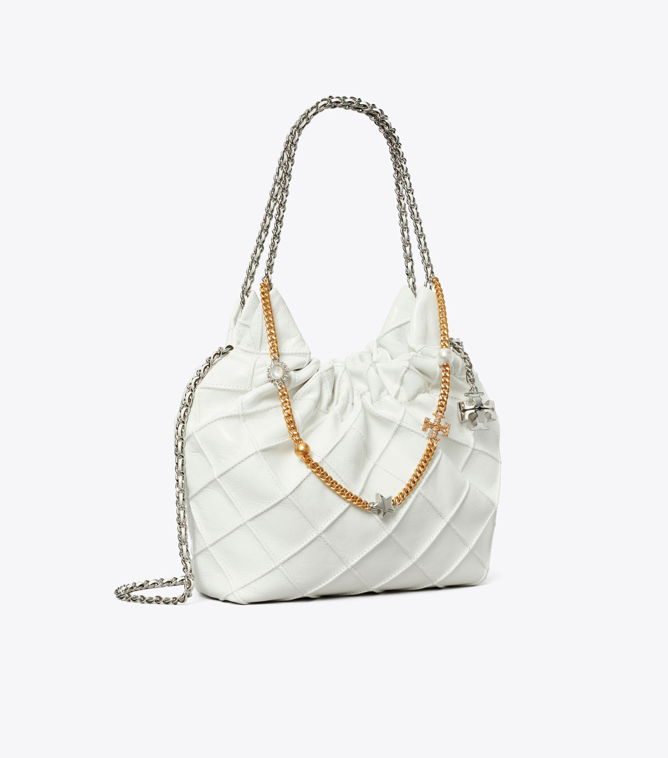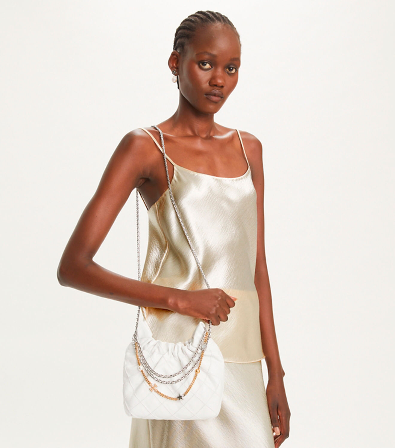 Glamour duradouro. Feita de couro napa amassado para um efeito desgastado, a bolsa Mini Fleming Hobo é finalizada com pregas em formato de diamante e uma alça de corrente entrelaçada com couro.
