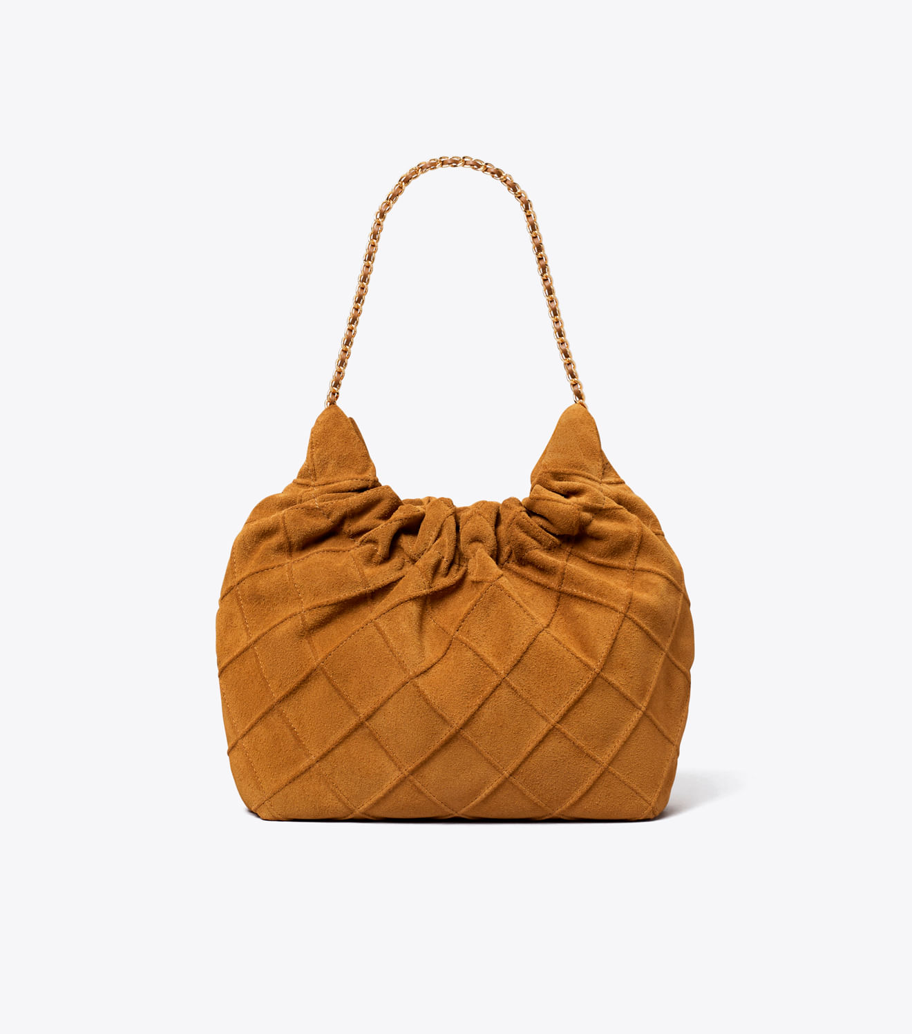 Glamour duradouro. Macia e despojada, a Mini Fleming Hobo Bag é feita de camurça rica com pregas em padrão diamante e uma alça de corrente trançada.