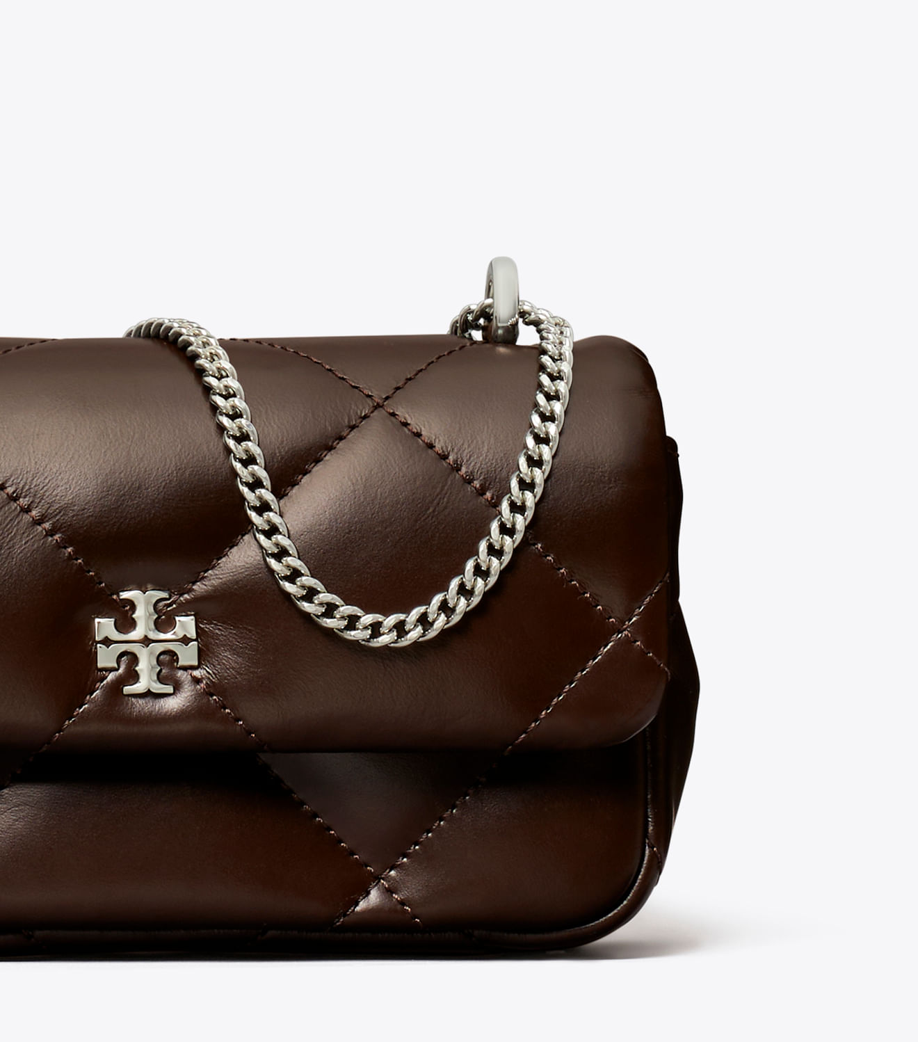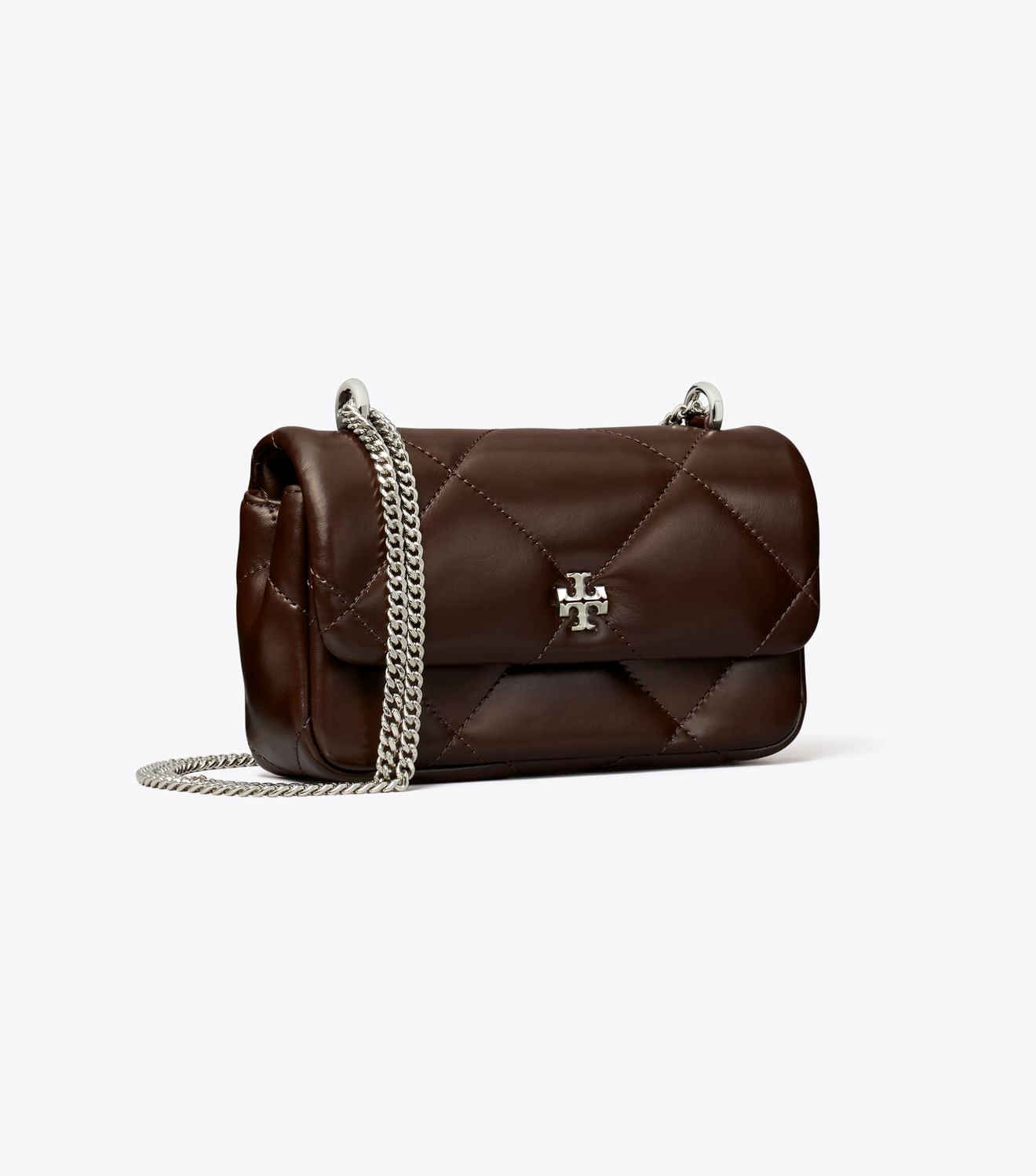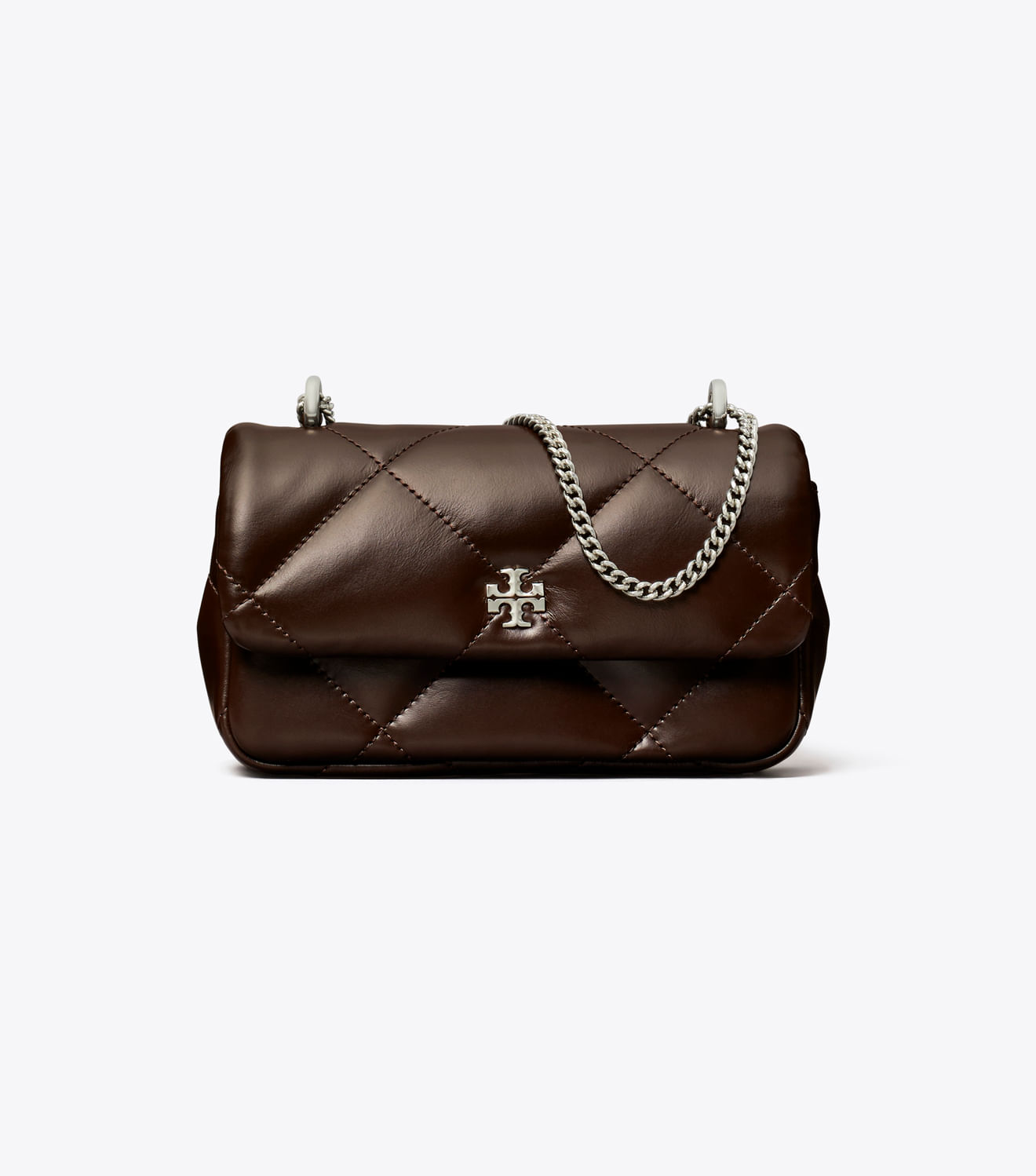 Apresentando a bolsa com aba para colcha Mini Kira Diamond Spring 24. Irresistivelmente macio com acolchoado de diamantes ampliado. Dimensão almofadada em formato clássico, pontuada por ferragens Double T chanfradas e alça de corrente.