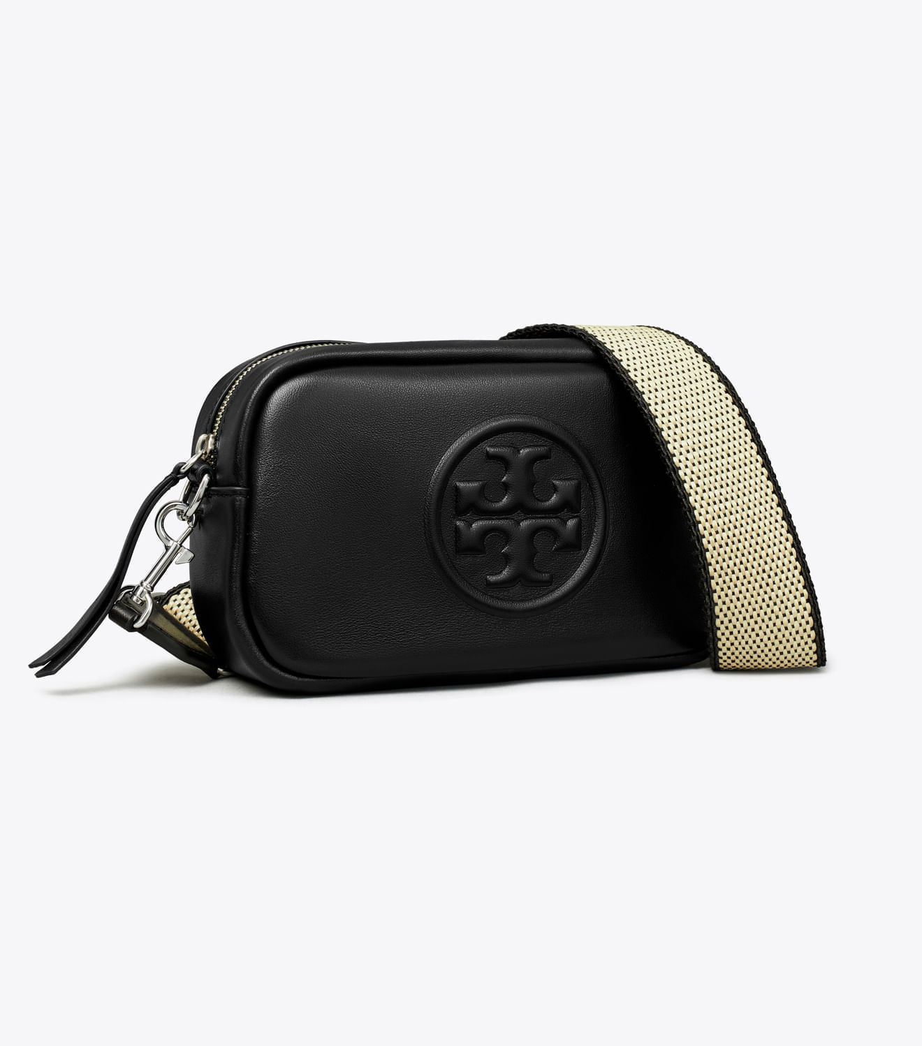 Da nossa coleção exclusiva. A bolsa transversal Mini Miller é novidade, feita em couro macio e liso com um caimento delicado. Possui dois compartimentos com zíper e o logotipo Double T em relevo. Pode ser usada com ou sem a alça de tecido removível.
