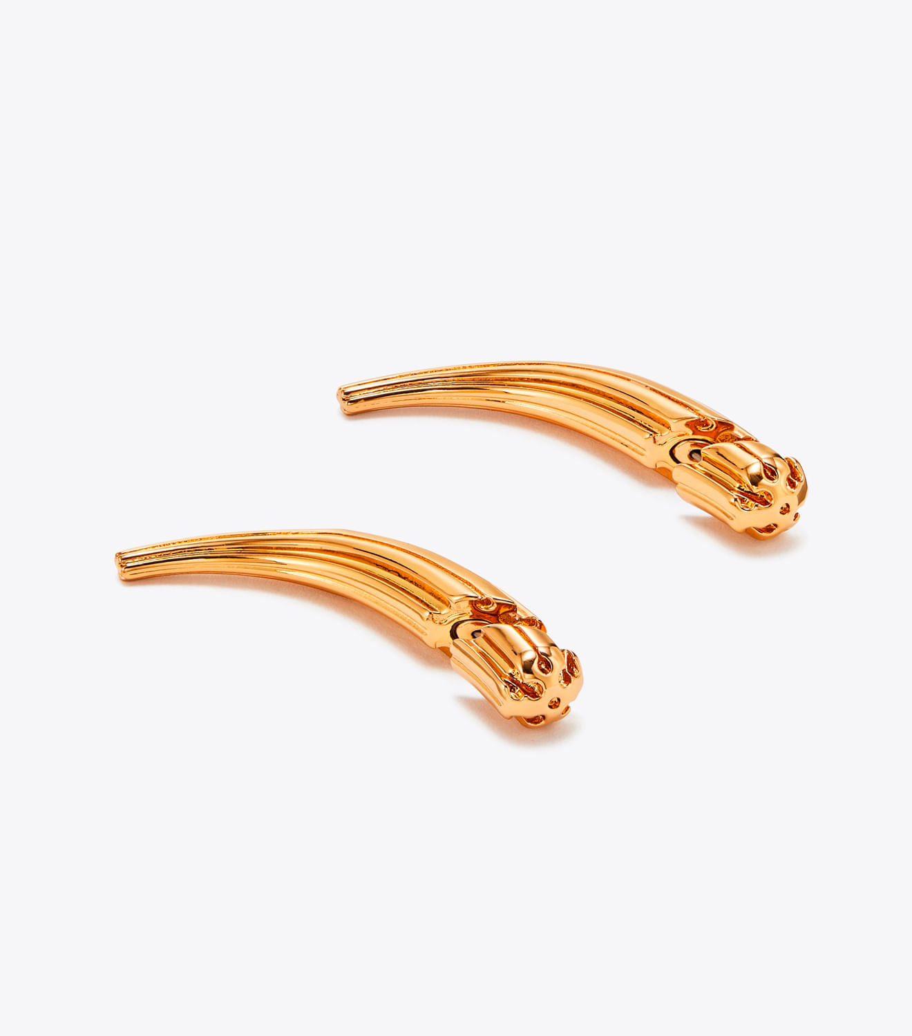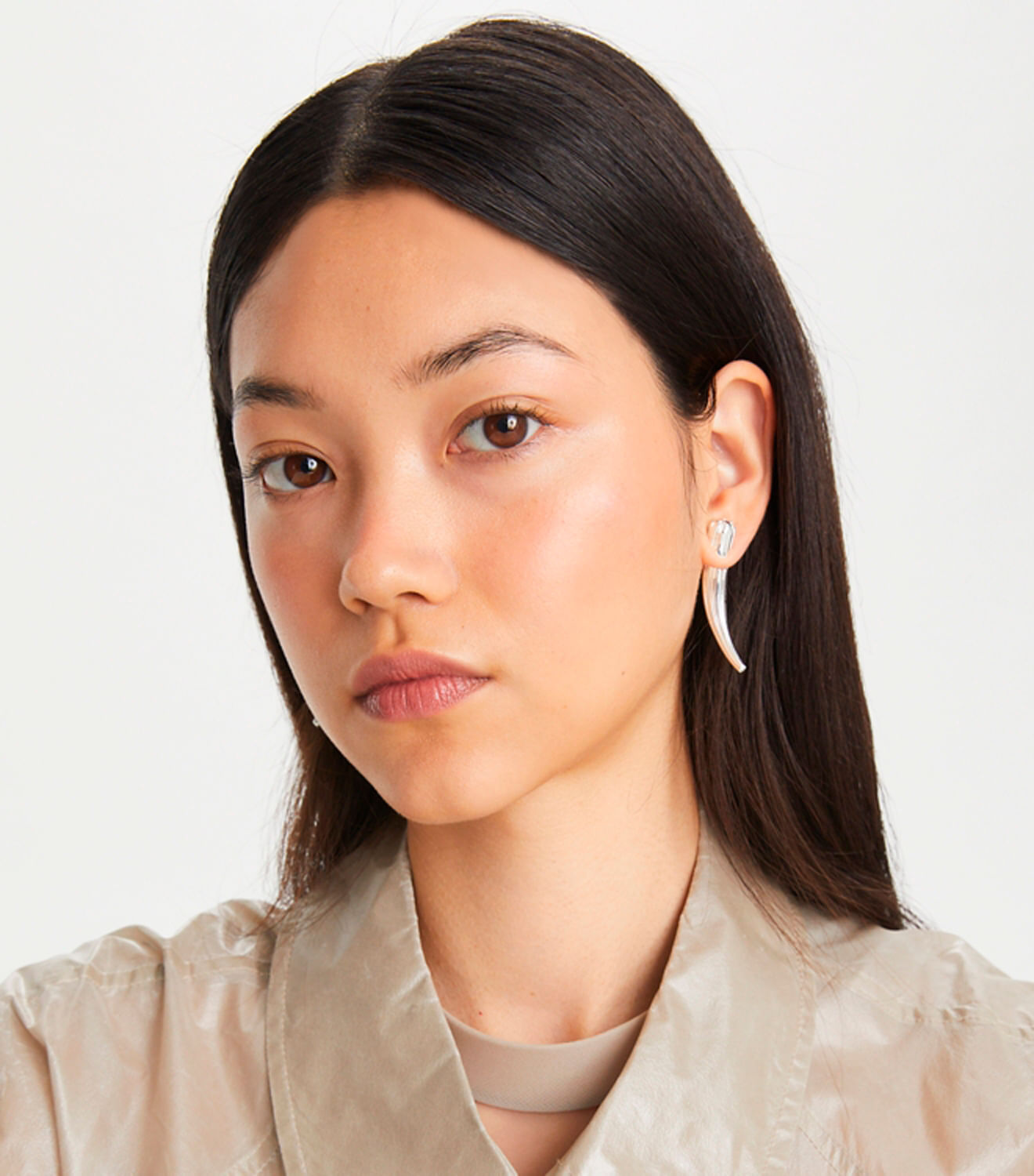 A arte imita a arte. A natureza surreal do nosso icônico detalhe de anel perfurado foi traduzida nas curvas suaves de joias marcantes. Vistos no desfile de outono de 2024, os brincos Pierced FrontBack apresentam pontas delicadamente caneladas com efeito trompe loeil que parecem perfurar o lóbulo da orelha.