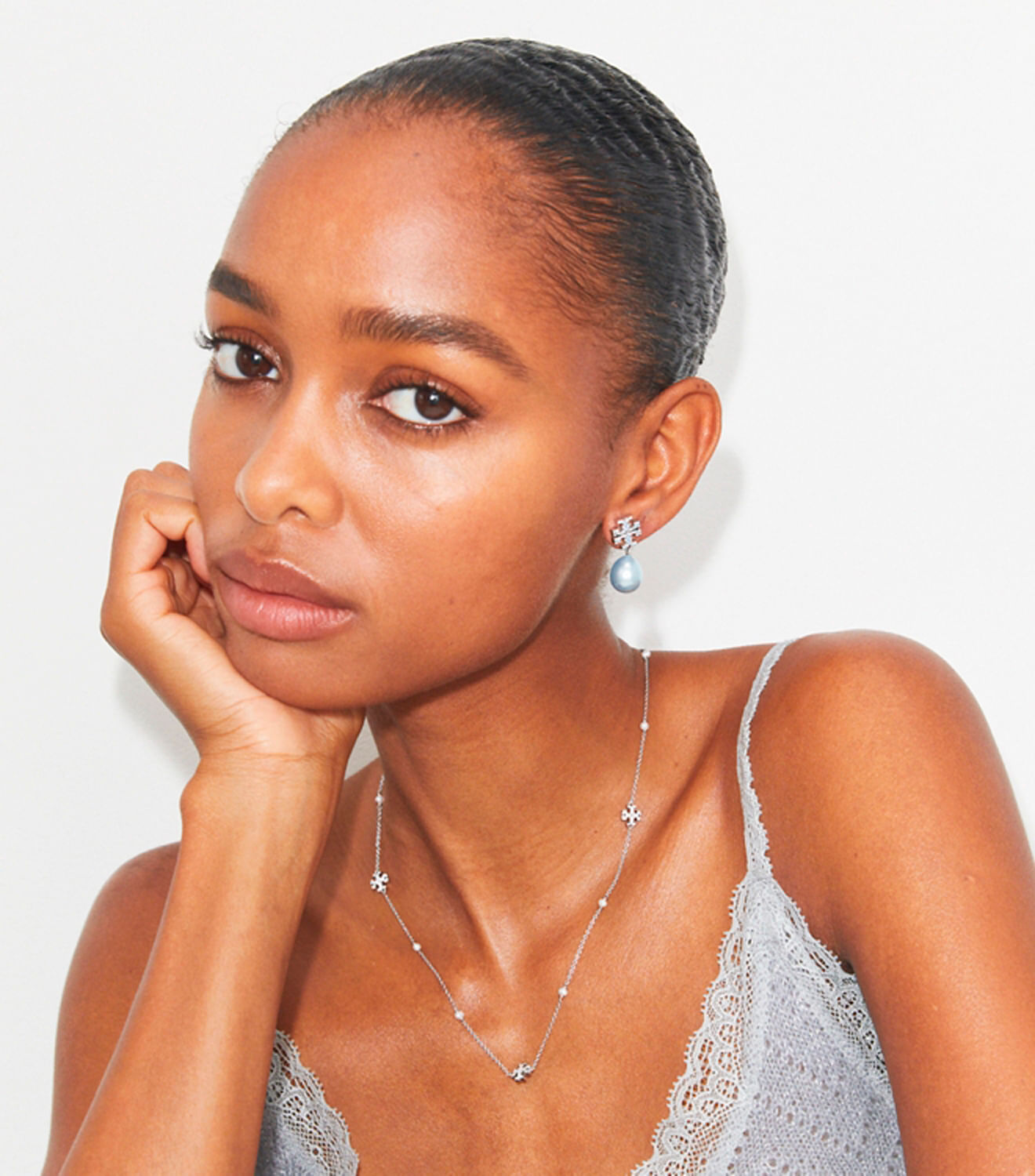 O brinco Kira combina nosso icônico Double T com uma gota de pérola barroca um formato orgânico e imperfeito. Para orelhas furadas.