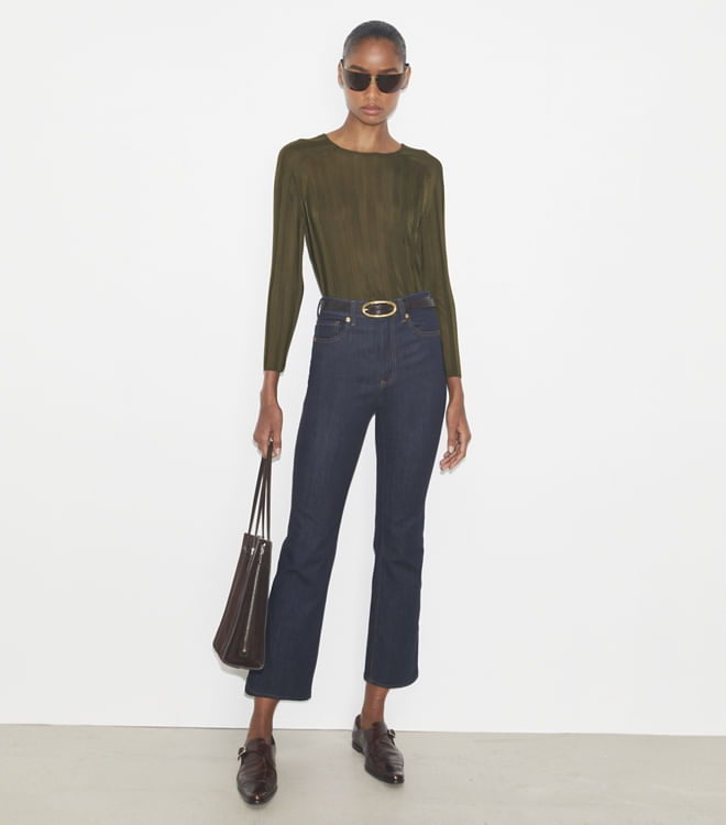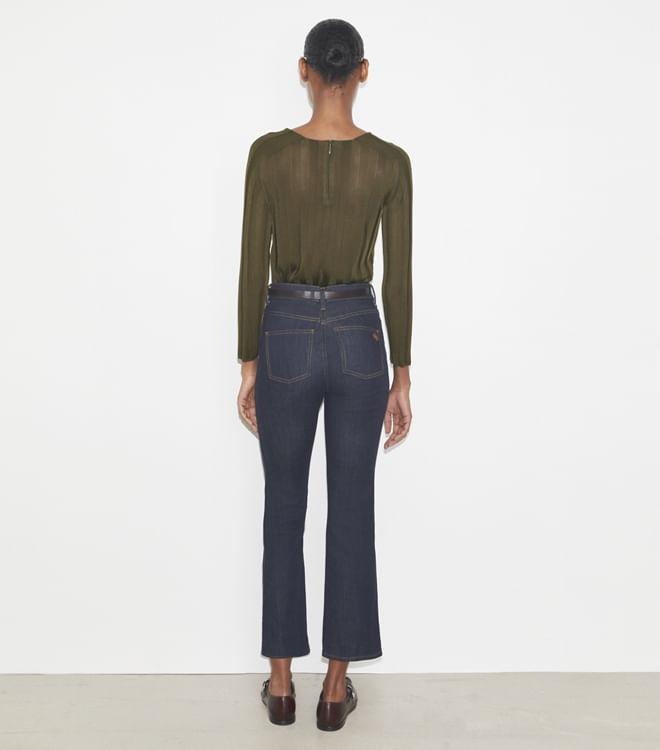 Nossas calças jeans flare cropped são uma peça essencial para o ano todo. Confeccionadas em algodão elástico, com cintura média elegante e bainha levemente flare.