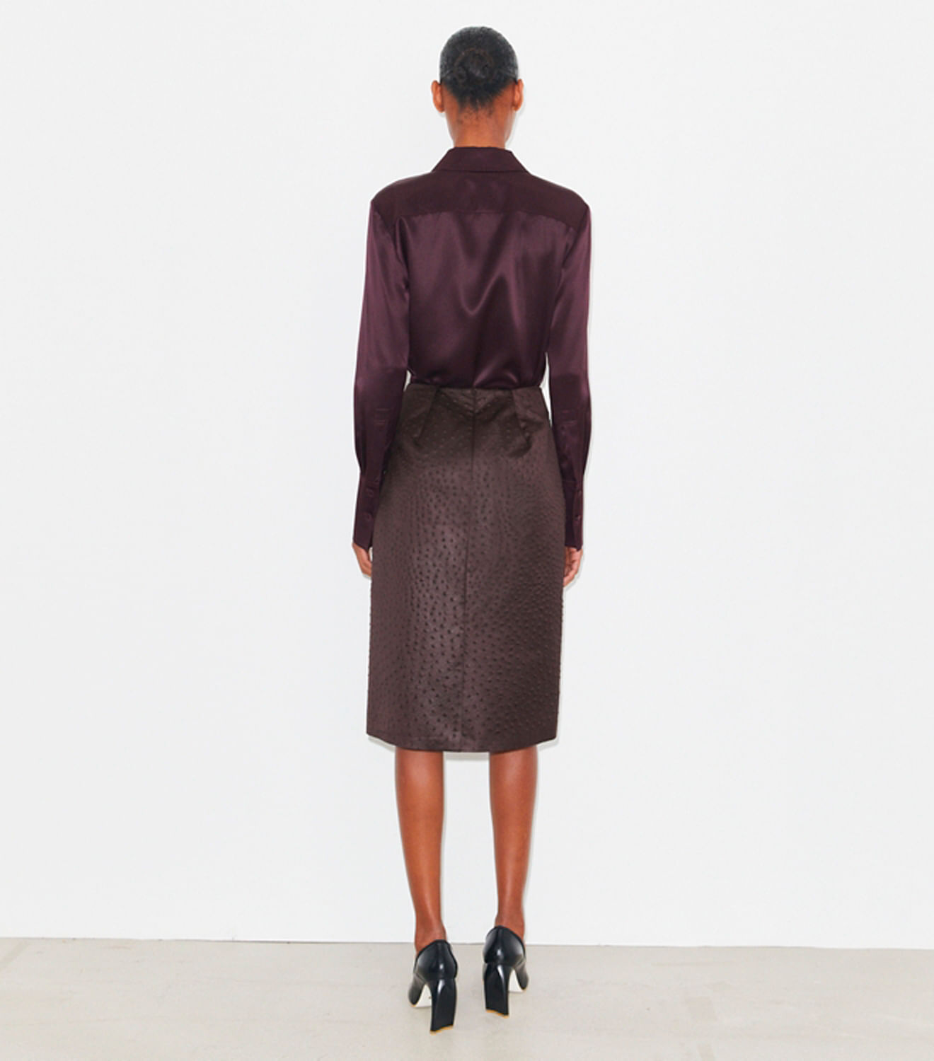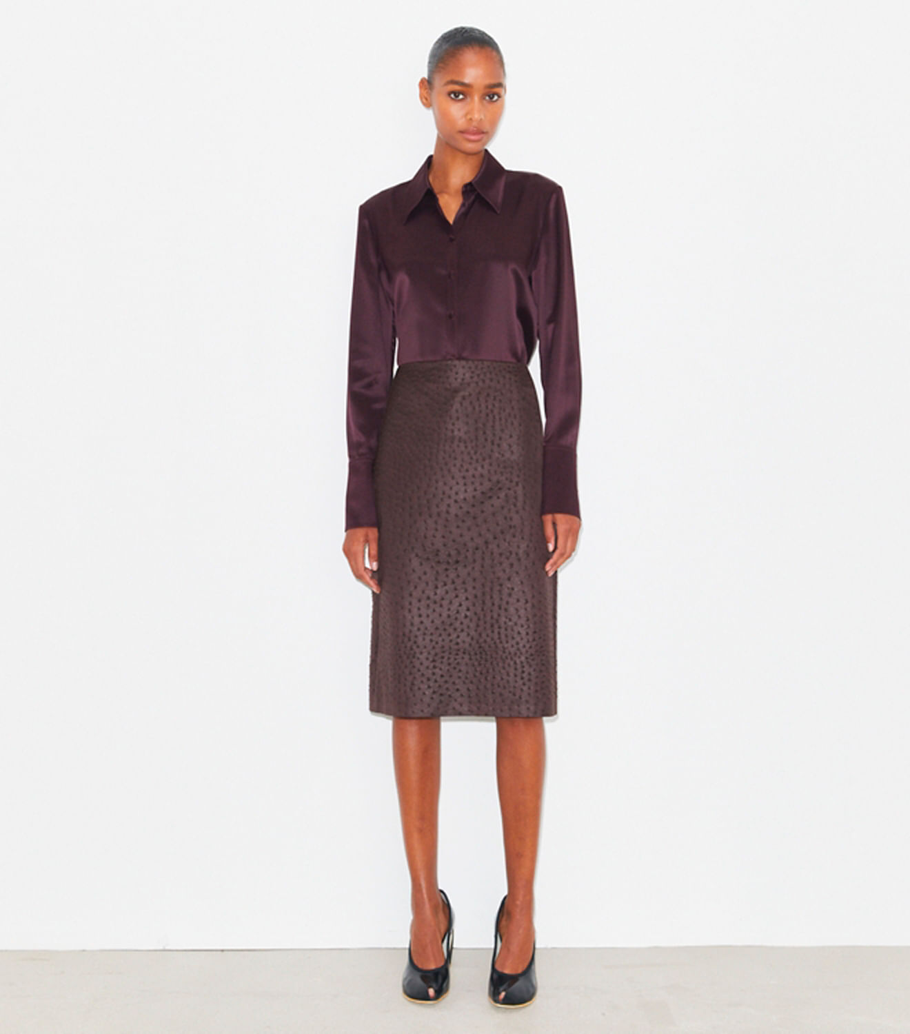 Fluida e elegante, a camisa de seda com punhos é um clássico do guardaroupa, com botões forrados de tecido na parte frontal. Uma peça confortável e prática para usar em diversas ocasiões.