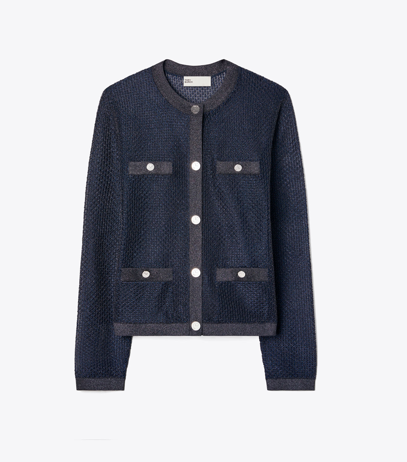 Uma versão sofisticada do clássico suéter feminino. O Cardigan Kendra é confeccionado em malha metálica leve com acabamento contrastante. É uma peça elegante e versátil que combina com tudo, desde camisetas a vestidos.