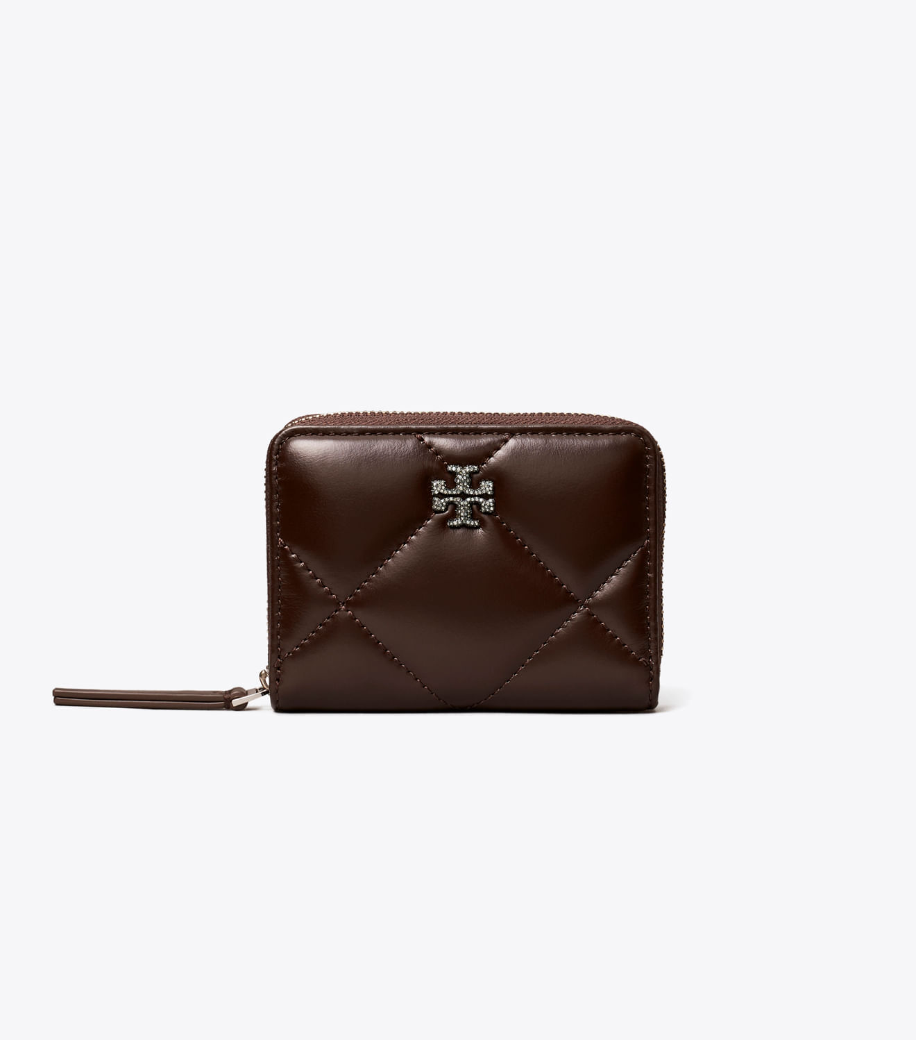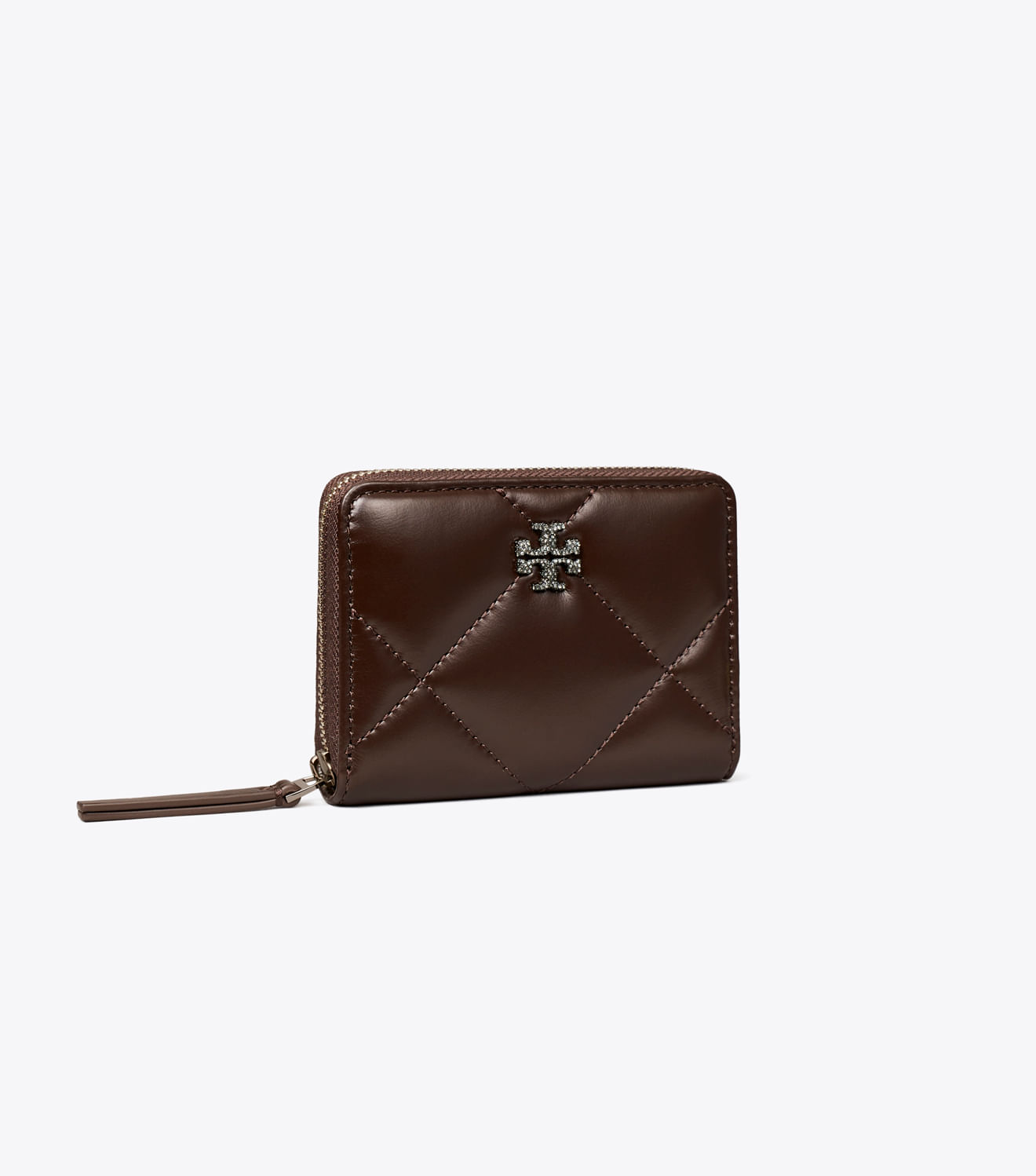 Couro italiano irresistivelmente macio com costura em formato de diamante em relevo. Design acolchoado com detalhes em metal com o logotipo Double T adornado com cristais pavé. A carteira Kira Diamond Quilt Zip tem o tamanho perfeito para bolsas pequenas, com vários compartimentos, incluindo um portamoedas.