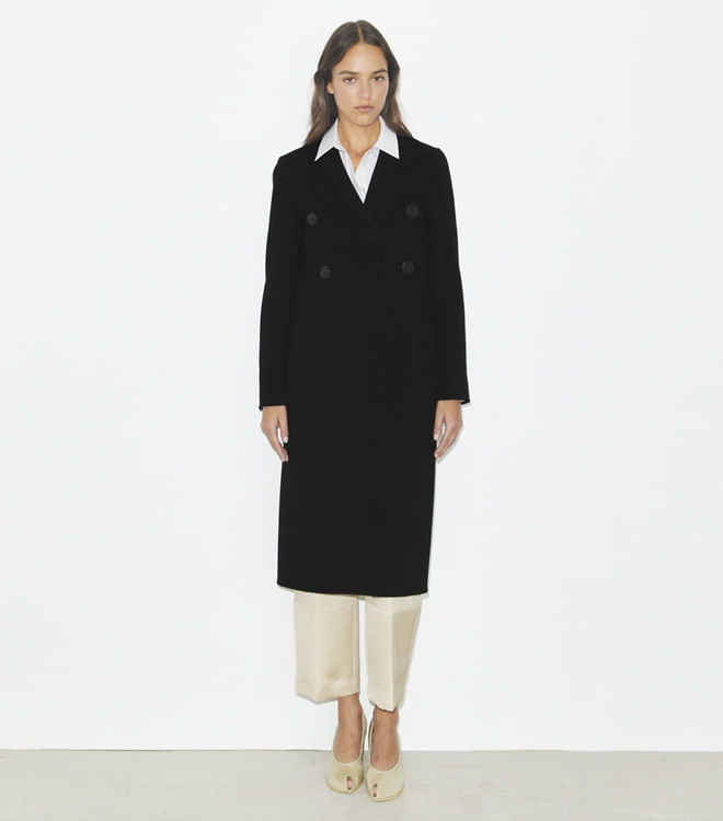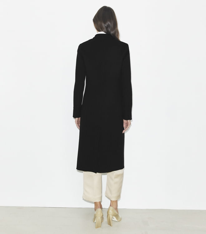 A coleção de outono explora a ideia de roupas esportivas americanas inovadoras. Um casaco clássico de lã é finalizado com botões decorativos de chifre, conferindo-lhe a aparência de um estilo trespassado. Uma sobreposição linda e atemporal.