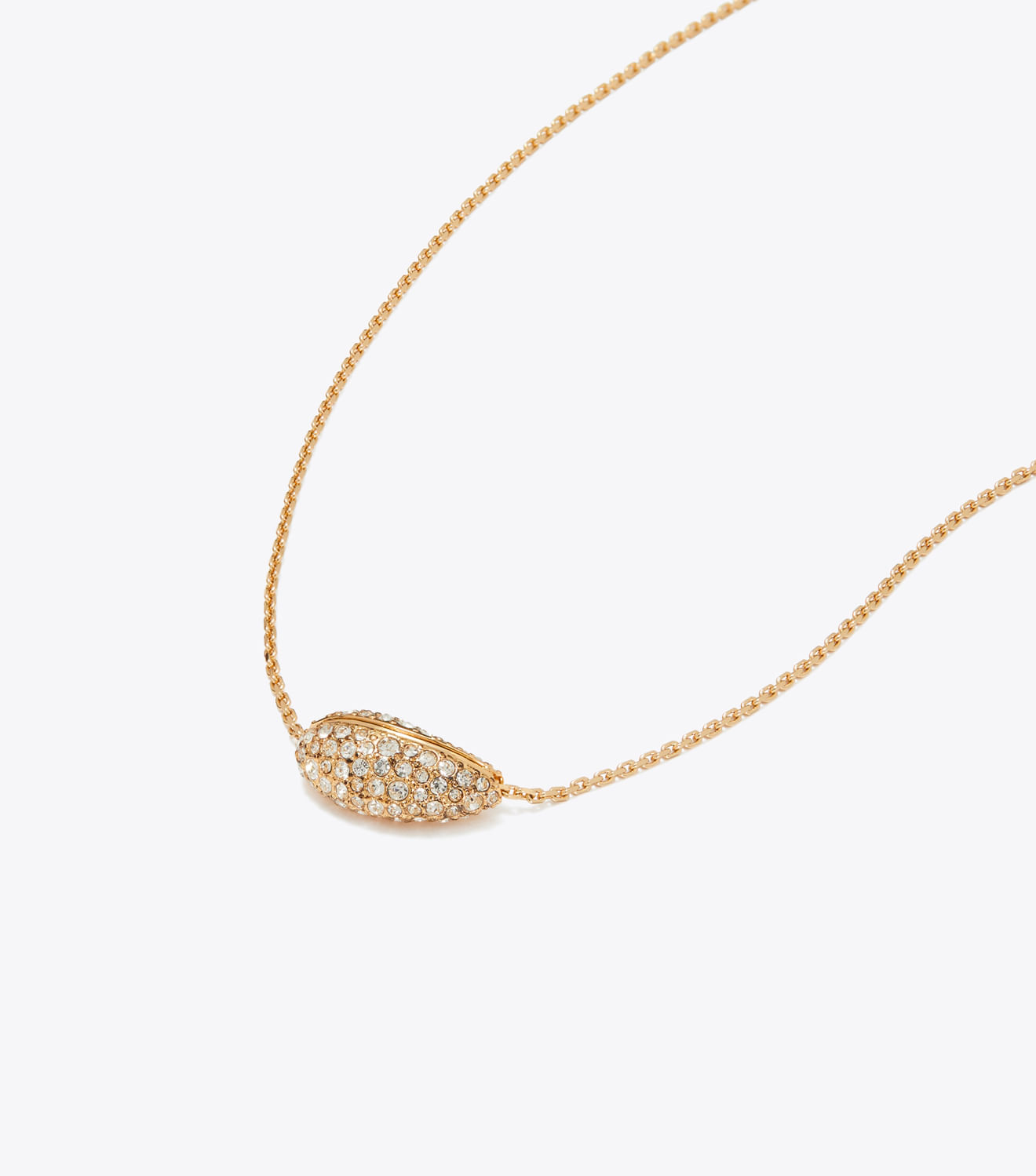 A arte imita a arte. A natureza surreal dos nossos pingentes vazados exclusivos se traduz nas curvas suaves de joias ousadas. O Colar com Pingente Pavé Vazado lembra o formato de uma vírgula, com um recorte delicado e detalhes em cristal. As curvas elegantes e assimétricas adicionam brilho e dimensão.