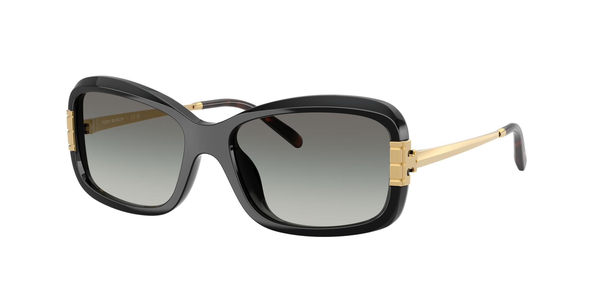 Armação retangular com bordas arredondadas e hastes finas de metal, fixadas com uma dobradiça Tory T. Os óculos de sol Eleanor são feitos com acetato de base biológica, produzido com um mínimo de 59% de carbono de base biológica.
