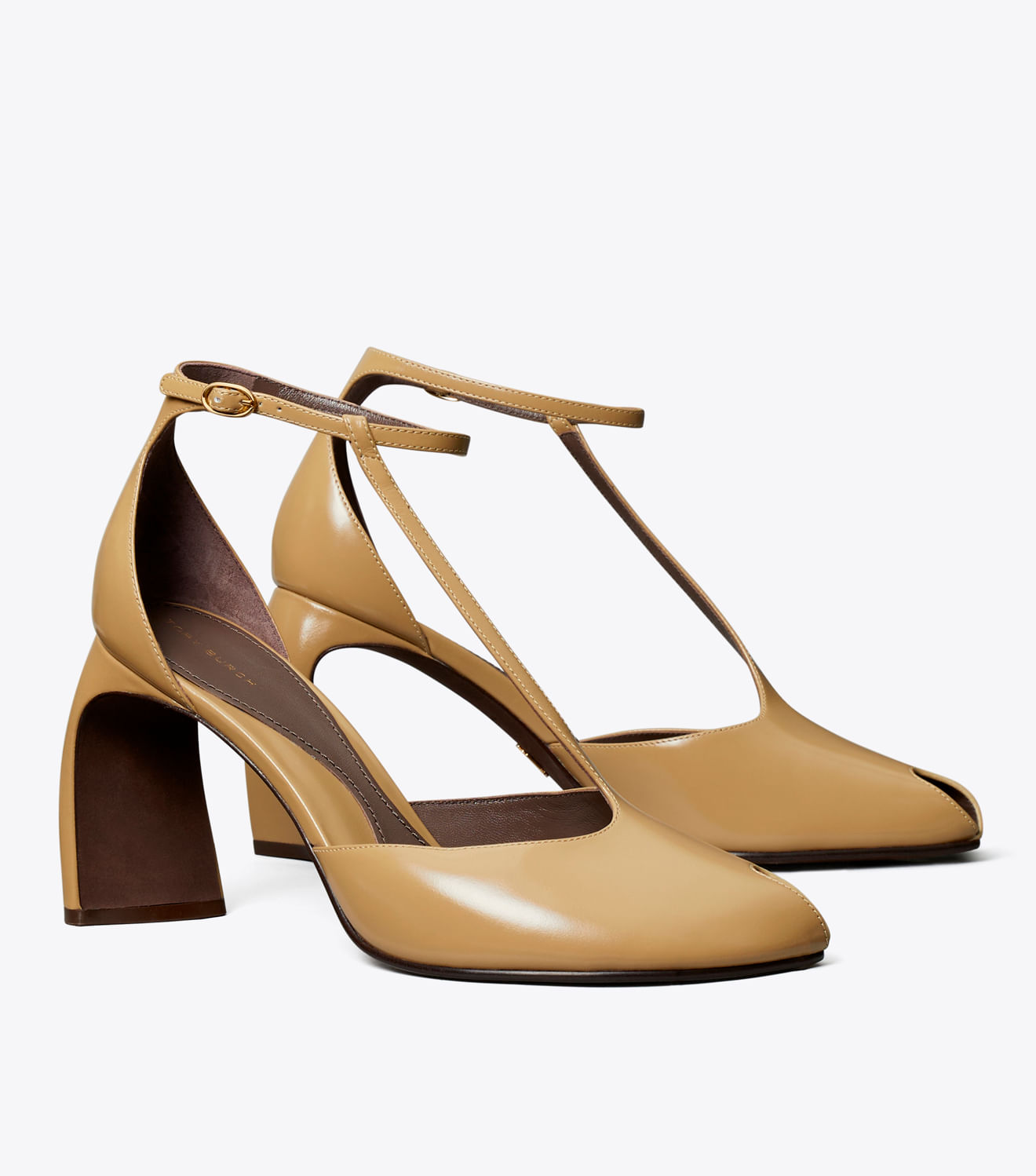 Apresentada no desfile de outono de 2025, a sandália peeptoe continua a explorar formas onduladas. Com um salto escultural e retorcido, que parece estar em movimento, a elegante sandália se destaca pelas linhas assimétricas, como a tira em T e a abertura na ponta. A silhueta refinada é finalizada com uma delicada tira no tornozelo com fivela. Confeccionada em parceria com uma curtume certificada pelo Leather Working Group, que garante altos padrões na fabricação e no gerenciamento de produtos químicos utilizados no couro.