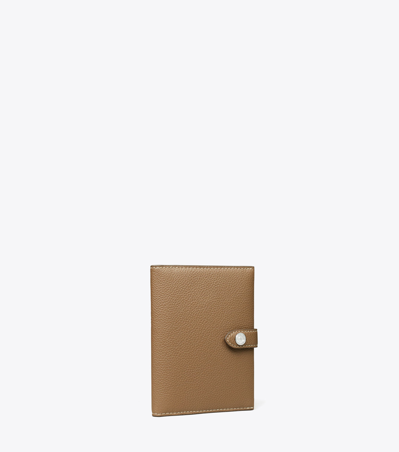 Novos acessórios trazem beleza às viagens com detalhes pequenos e bem elaborados. Feita em couro macio com textura granulada, a capa para passaporte possui bolsos internos e fecho com botão de pressão com o nosso logotipo. Fabricada em parceria com uma curtume certificada pelo Leather Working Group, que apoia altos padrões na fabricação de couro e no gerenciamento de produtos químicos.