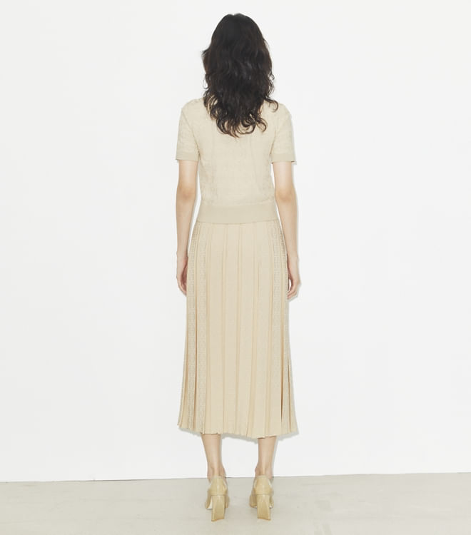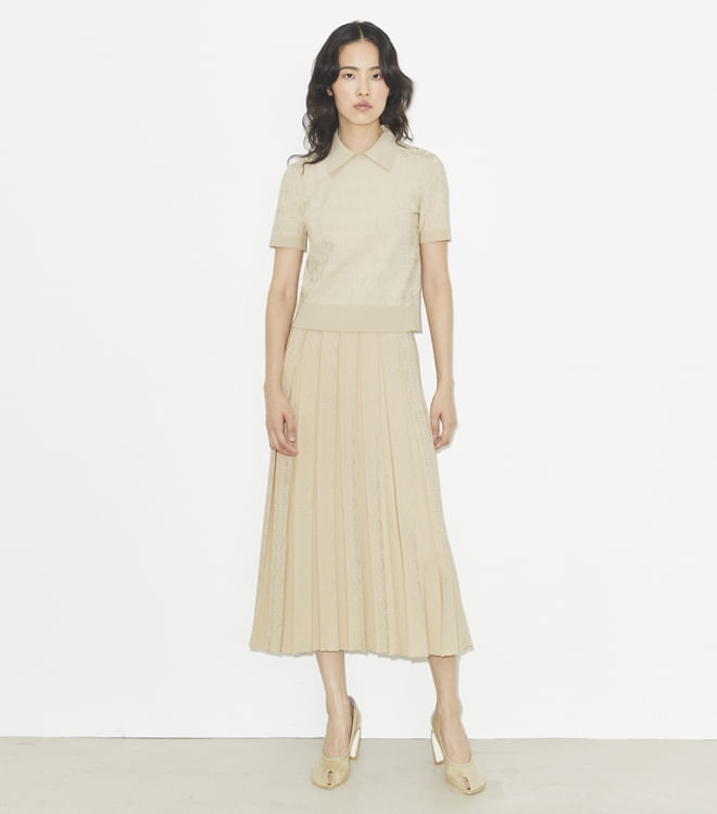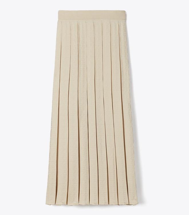 Esta saia plissada apresenta nossa exclusiva trama jacquard com T Monogram e uma silhueta versátil de comprimento médio, com um padrão tonal que adiciona uma textura sutil.