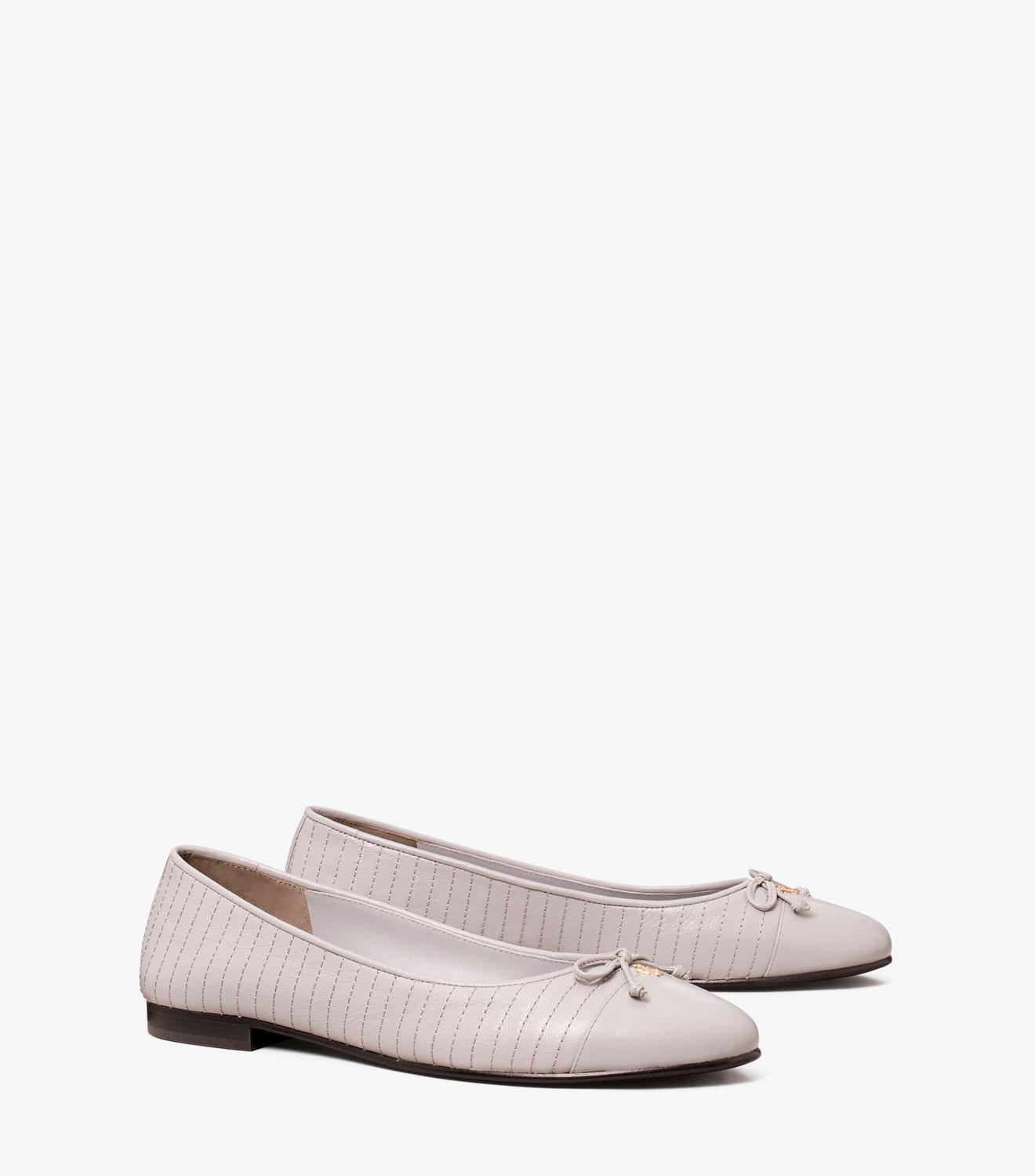 Uma sapatilha clássica confeccionada em couro acolchoado é finalizada com uma biqueira de couro contrastante e embelezada com um laço. Um sutil Double T inicia o estilo elegante como uma nova assinatura da marca. Fabricado em parceria com um curtume certificado pelo Leather Working Group, apoiando altos padrões na fabricação de couro e gerenciamento de produtos químicos.