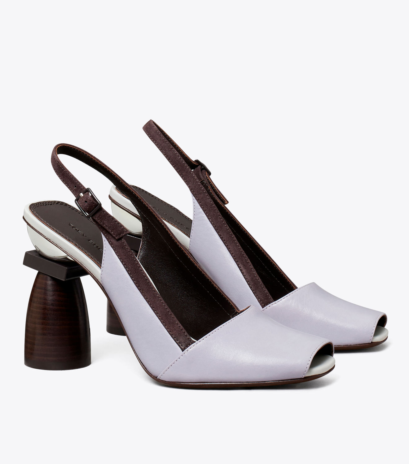 Um design de inspiração abstrata, utilizando uma montagem meticulosa de couro. Nosso sapato Marquetry com salto bloco é um peep-toe moderno com um salto escultural. Feito com couro, camurça e metal.