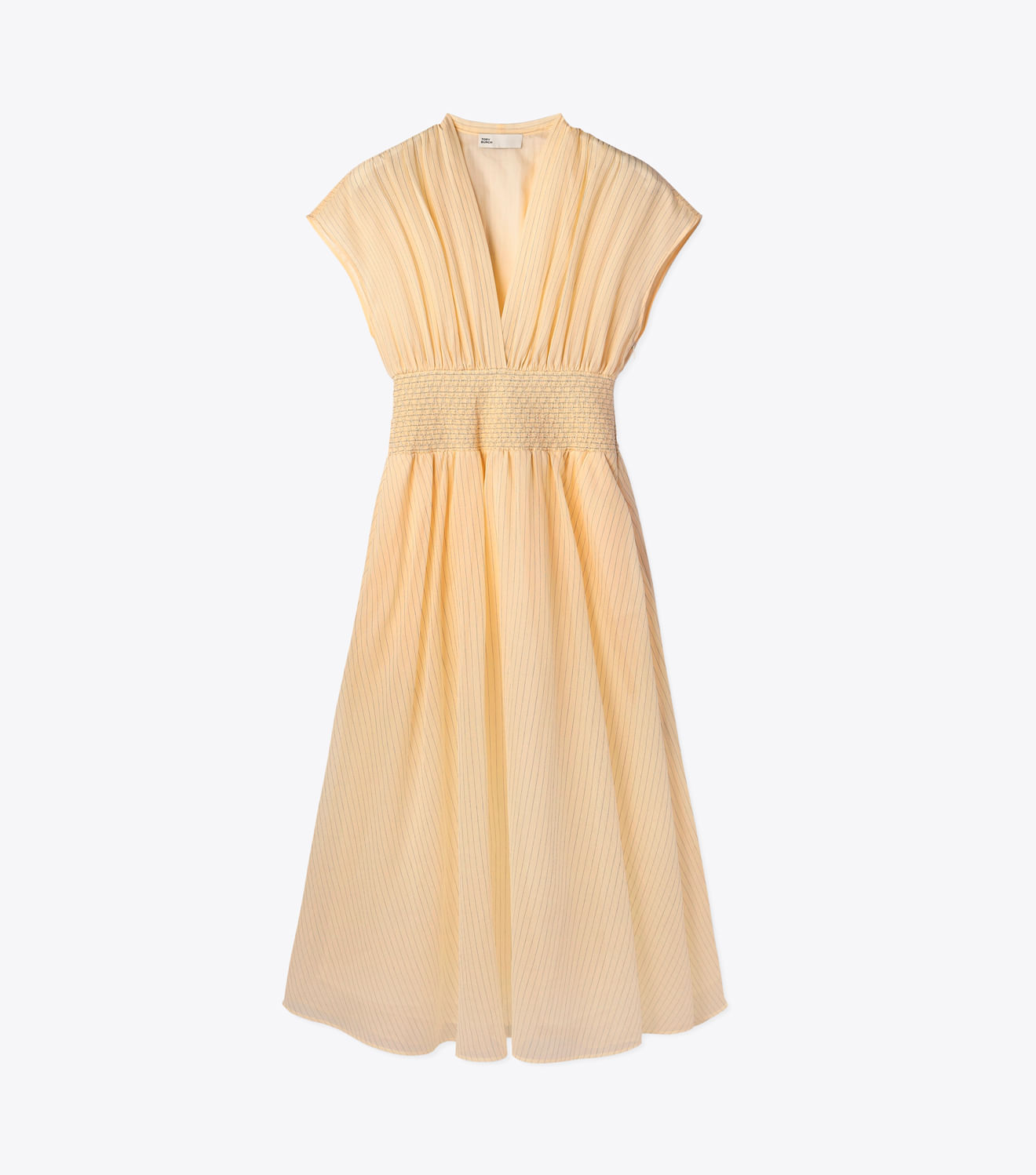 Elegante e versátil, o vestido de algodão listrado tem cintura marcada e saia rodada, que valorizam a silhueta. O decote discreto é a base perfeita para joias marcantes.
