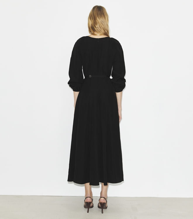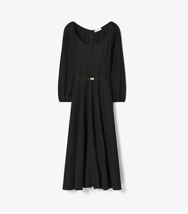 - 65% viscose, 35% linho - Zíper traseiro oculto com fecho de colchete - Bolsos nas costuras laterais - Cinto removível com fecho de fivela - Elástico nos punhos das mangas - Comprimento: 134 cm; comprimento da manga: 81 cm, baseado no tamanho 36 - Acima do tornozelo - Lavagem a seco - Vestidos - Código do produto 176424